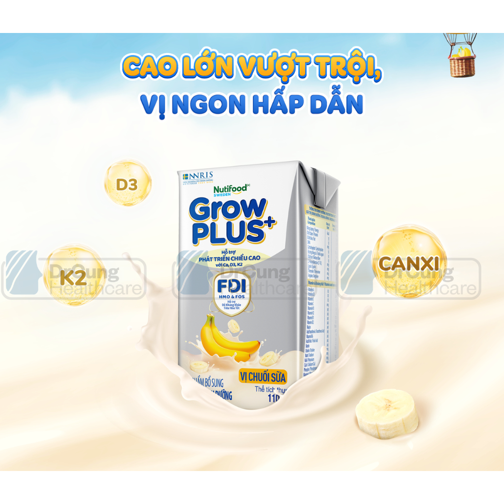 1 Thùng 24H 110ml Sữa Dinh Dưỡng Nutifood GrowPLUS+ VỊ CHUỐI Cao Lớn Vượt Trội Hộp (24H x110ml)