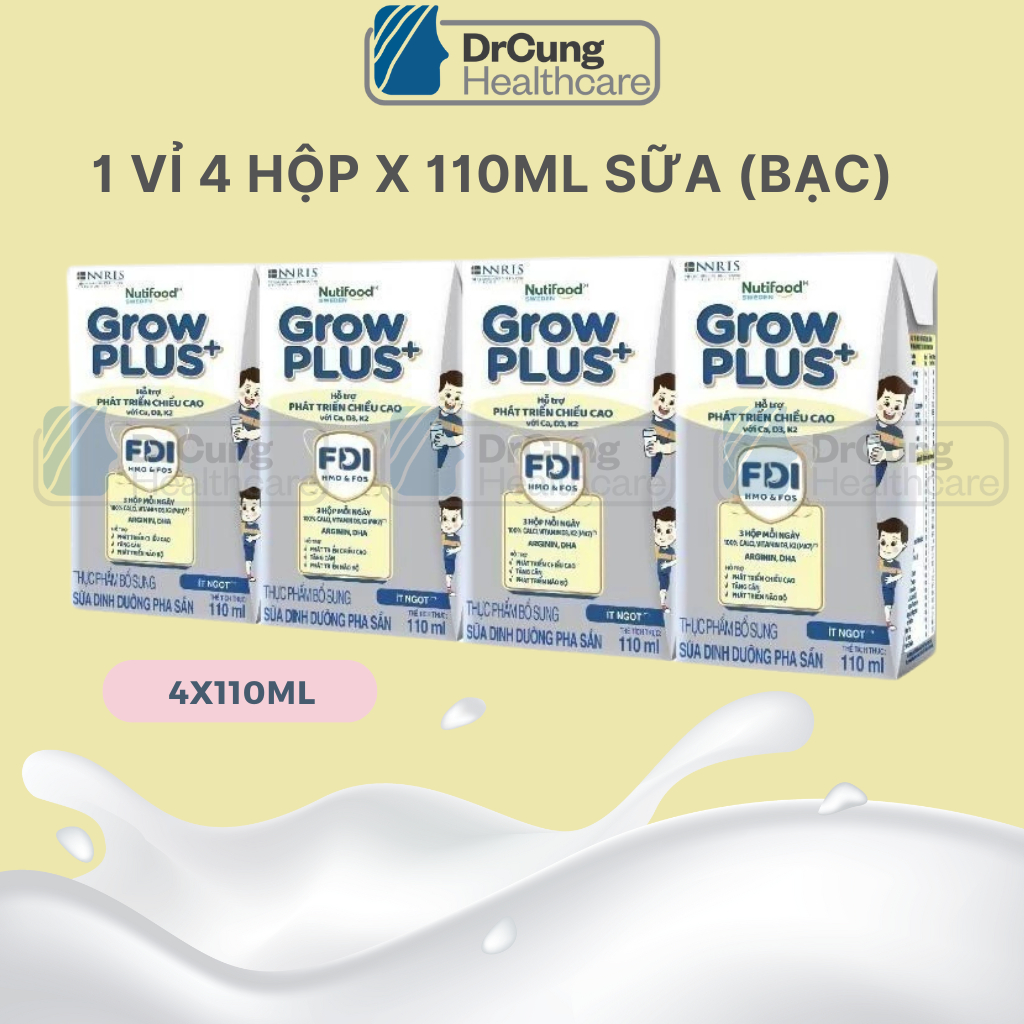 2 Thùng GROW BẠC 24 Hộp 110ml Sữa Dinh Dưỡng Nutifood GrowPLUS+ Cao Lớn Vượt Trội Hộp (Tổng 48 hộp x 110ml)