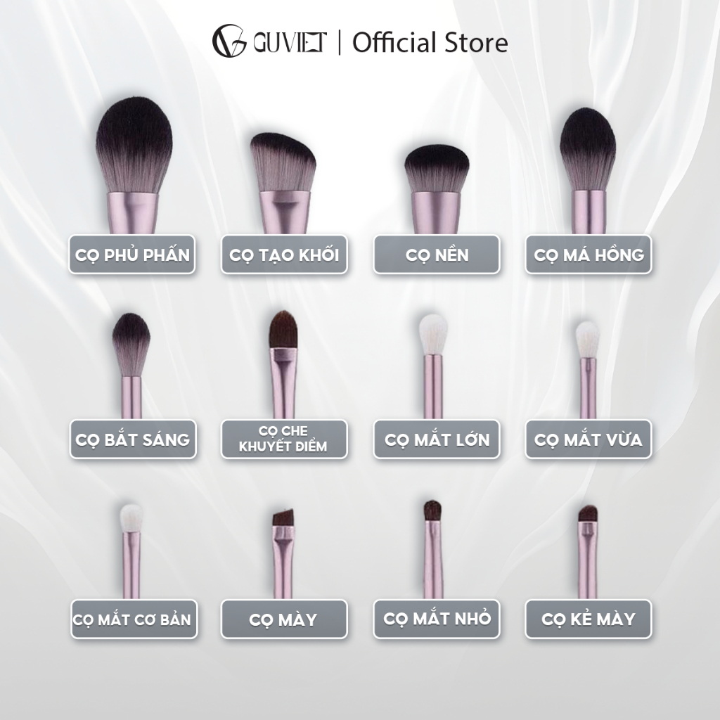 [Võ Hà Linh x GUVIET] Set 12 Cọ Nâu Ngà Kèm Bao Da (côc) tặng trứng giặt cọ 250g