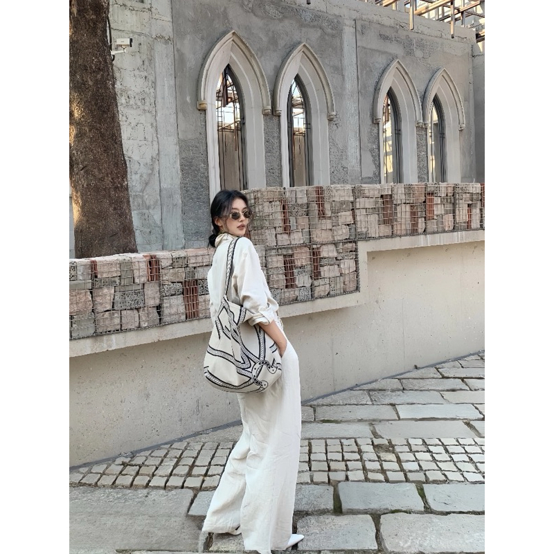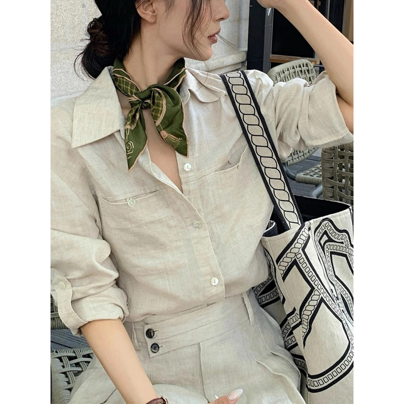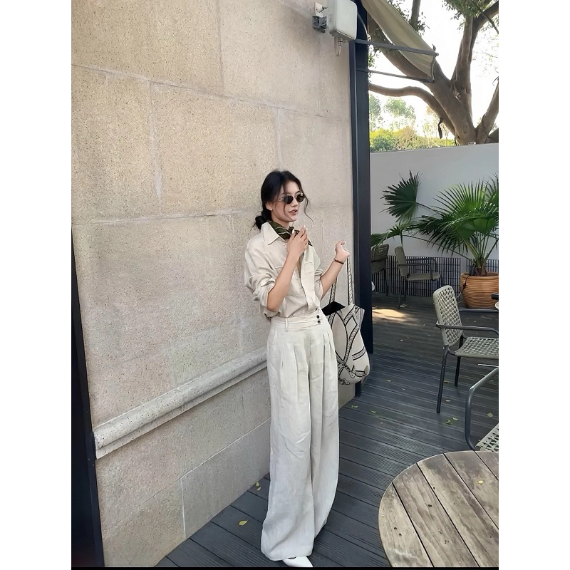 SET LINEN ÁO SƠ MI 2 TÚI ĐÍNH CÚC MIX QUẦN LƯNG CAO DÁNG DÀI ỐNG RỘNG BẢN TO CÚC CÀI PHONG CÁCH HÀN QUỐC ĐỦ SIZE