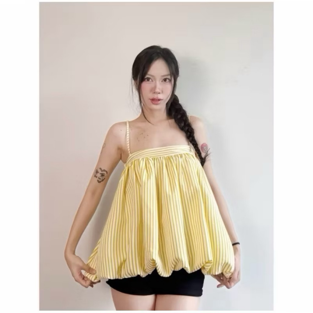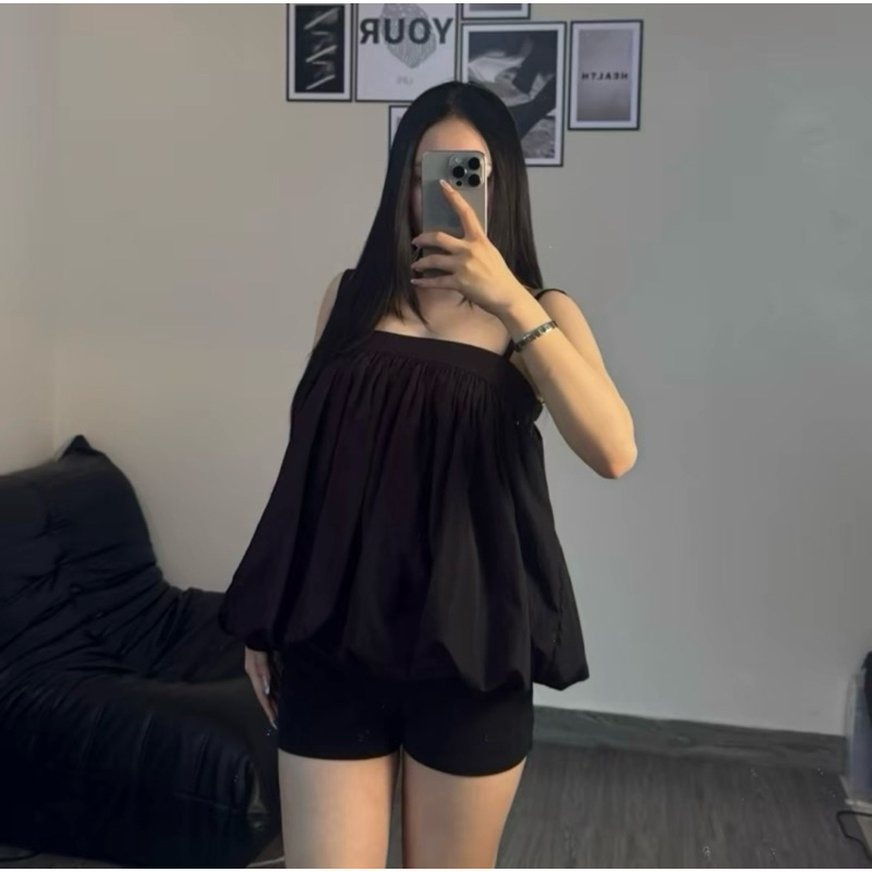 𝐀𝐓𝟎𝟏 ( 𝐂𝐎́ 𝐓𝐀̆𝐍𝐆 Đ𝐎̛ ) ( tặng buộc tốc ngẫu nhiên ) Áo 2 dây dáng bí babydoll basic by CarrotShop