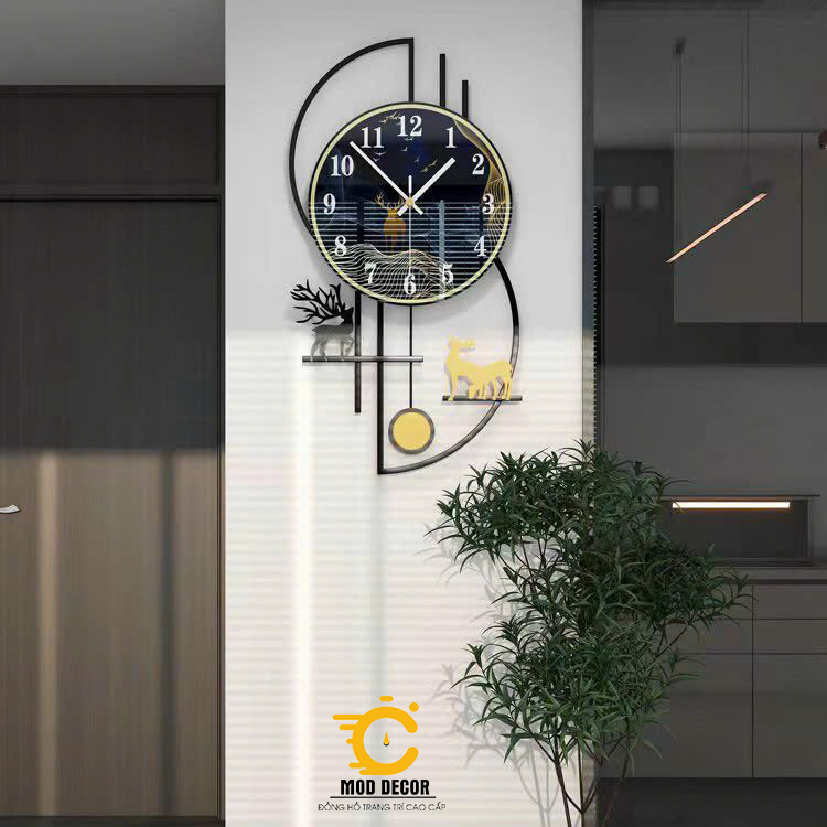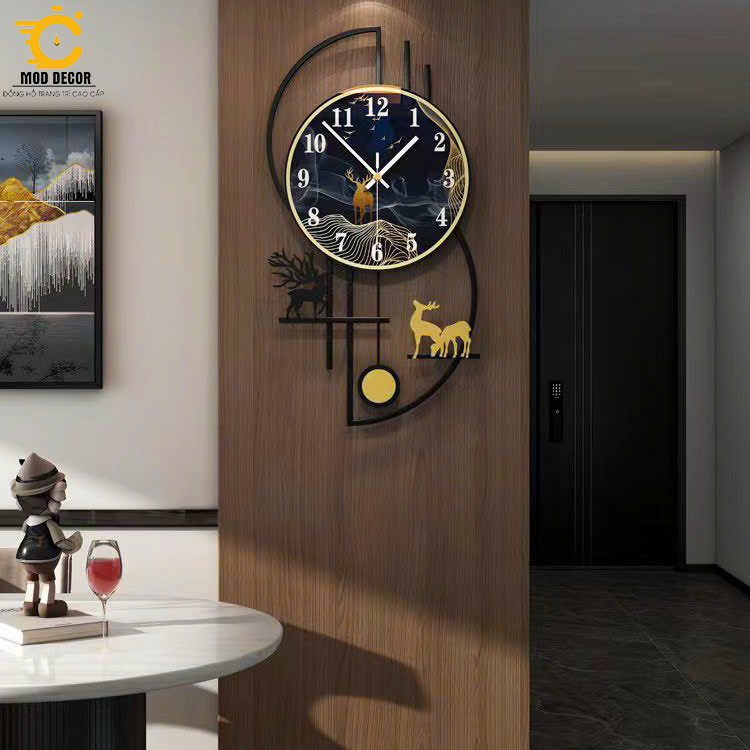 Đồng hồ treo tường trang trí hươu tài lộc MOD Decor, Lianzhang JJT mã 2608