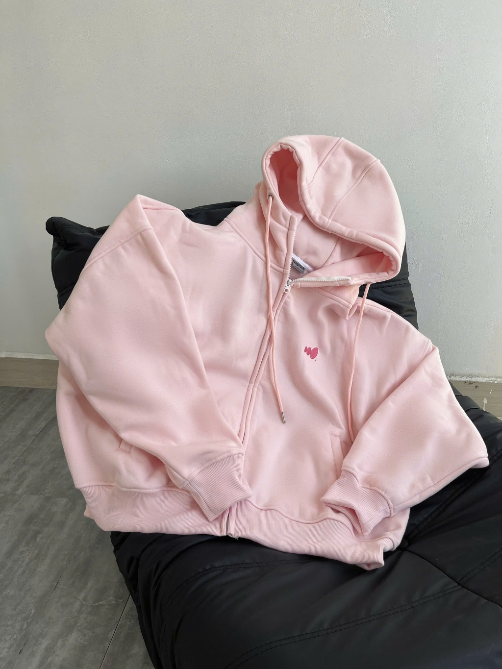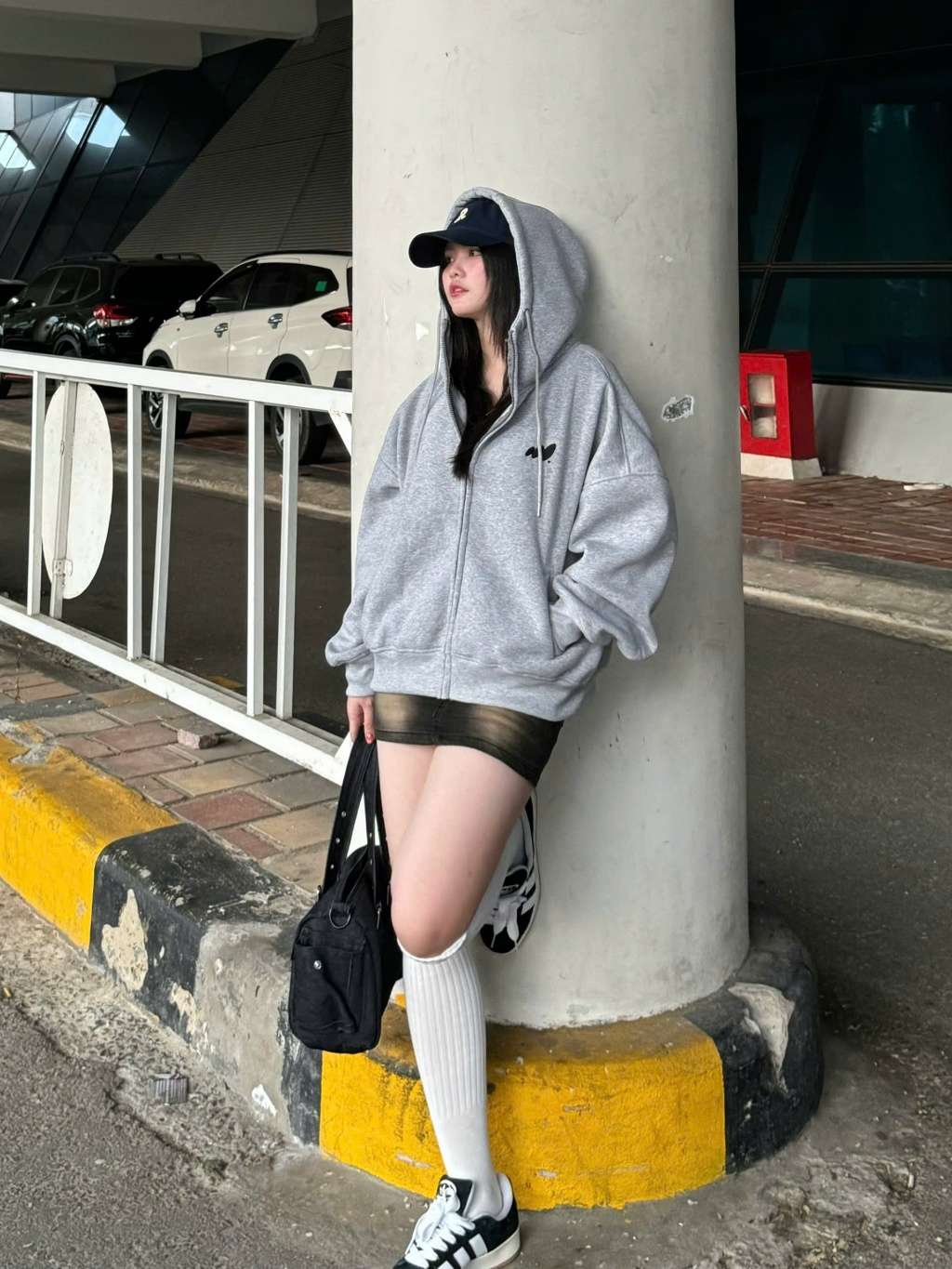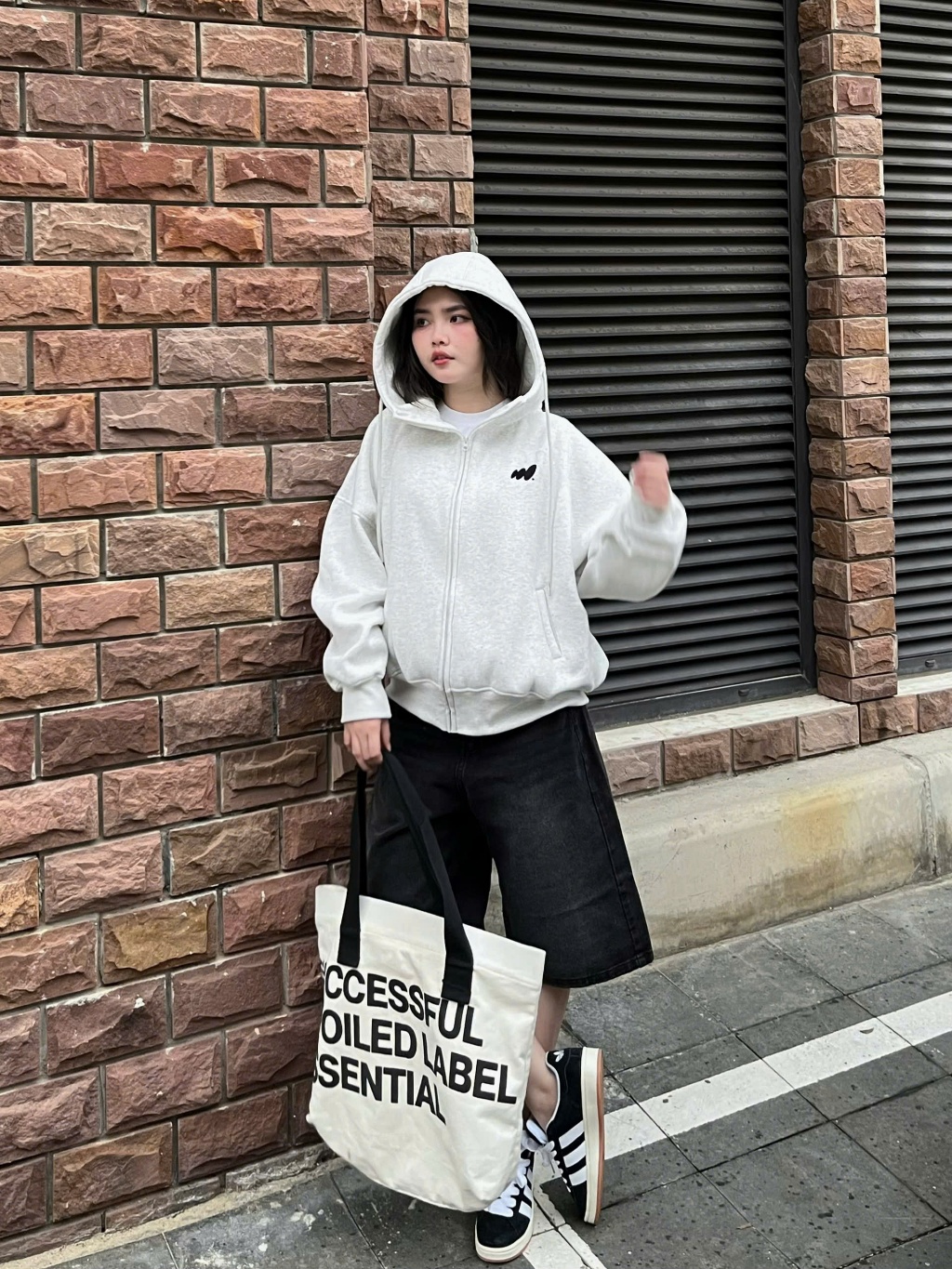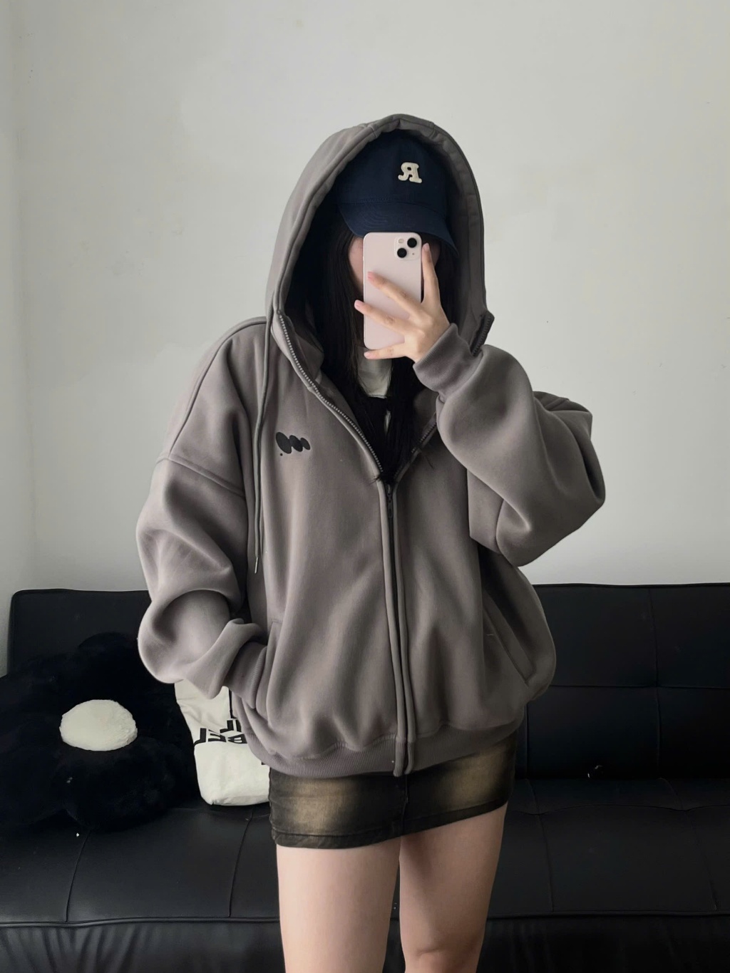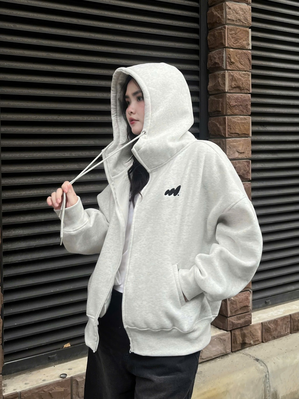 Áo hoodie zip cổ cao Migcool, áo khoác nỉ bông form boxy logo thêu basic Premiuum 2025 AK01