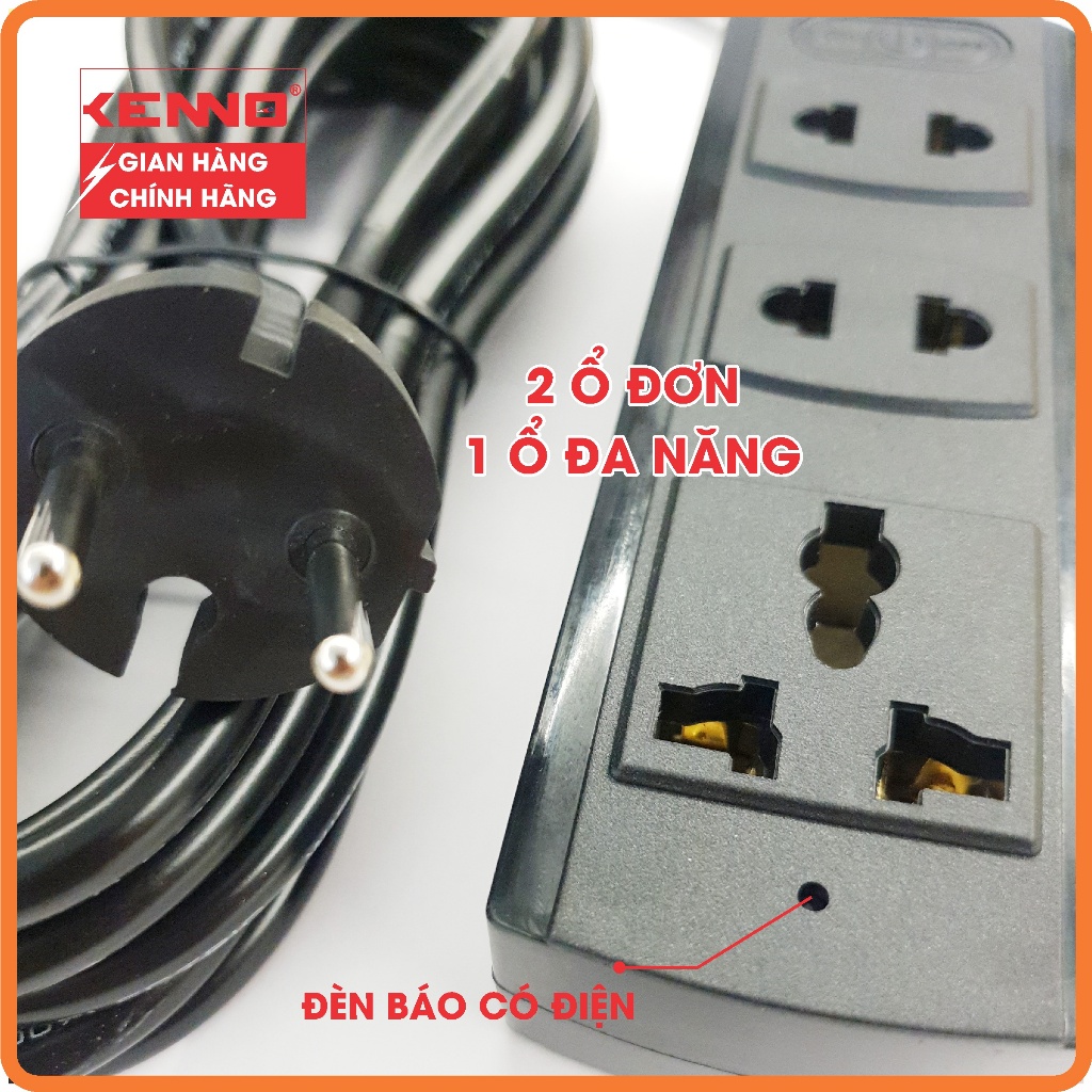 Ổ cắm điện chịu tải 1200W Kenno lõi sứ mã 3A3 3A5 KENNO 3 lỗ cắm dùng cho máy tính, tivi, màn hình