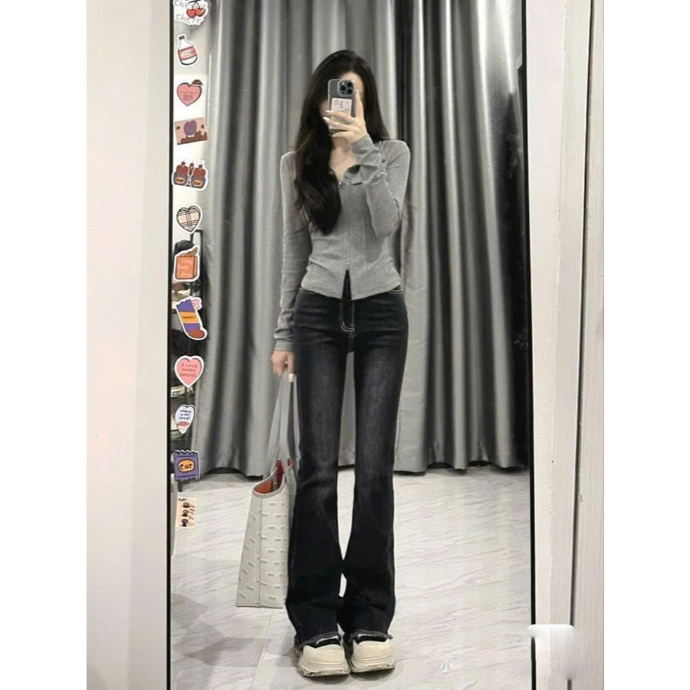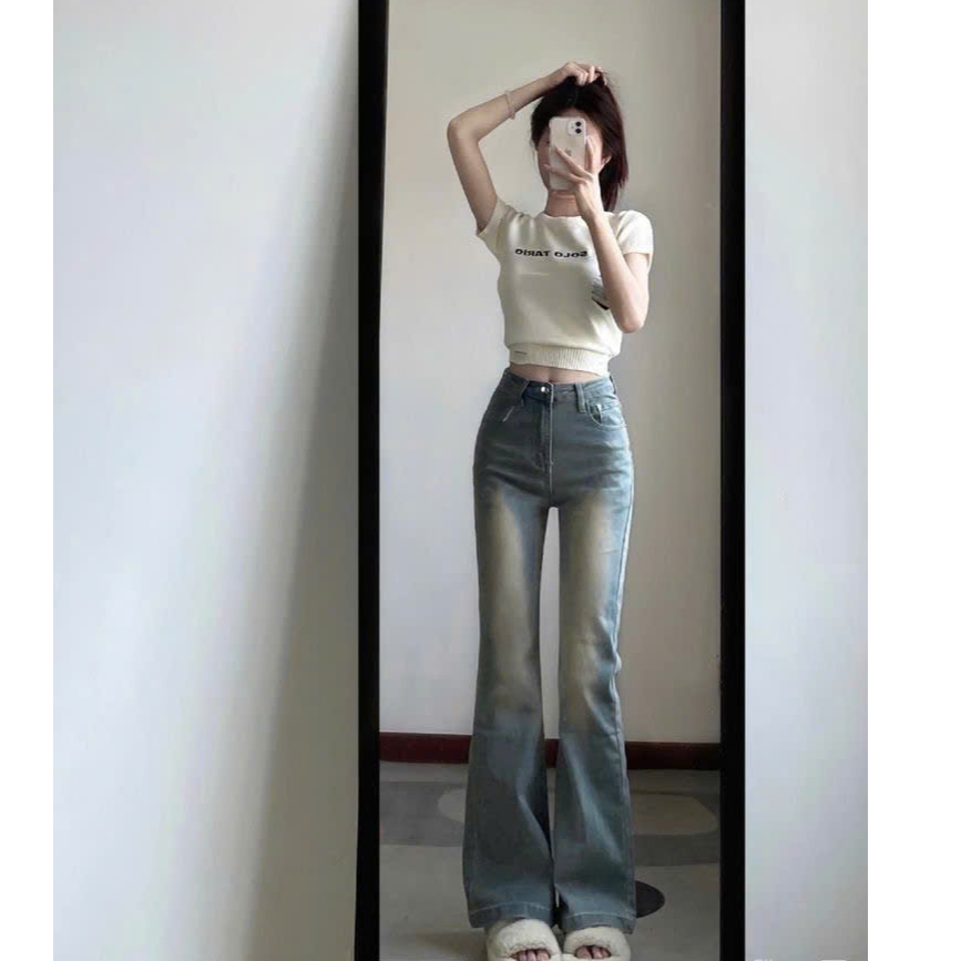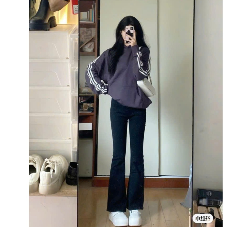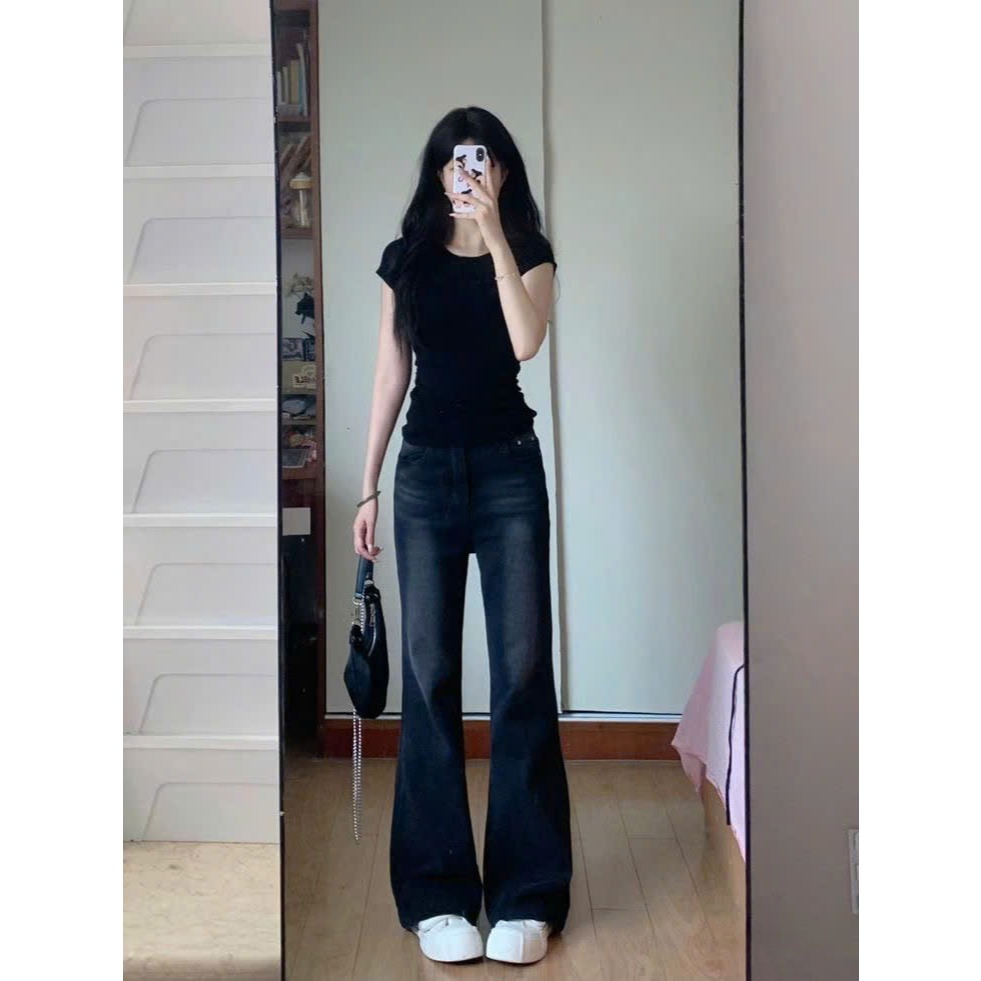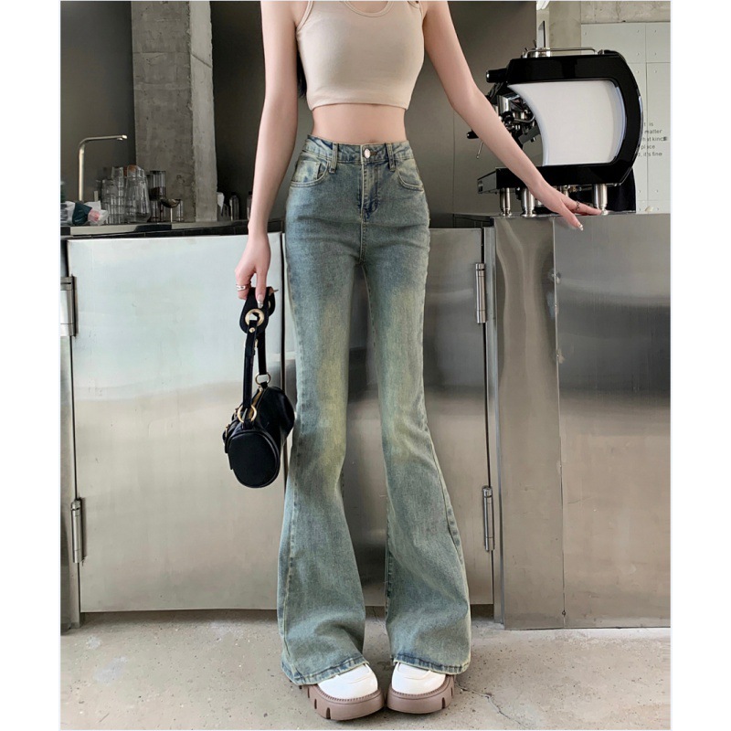 Quần Jeans nữ ống loe cạp cao MIAA Chất JEAN co giãn Dáng loe Đứng Rộng LƯNG CAO vải bò denim không phai màu xanh đen