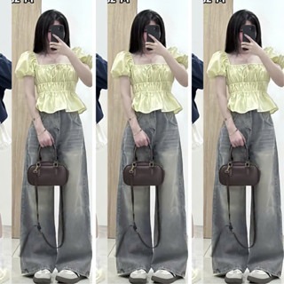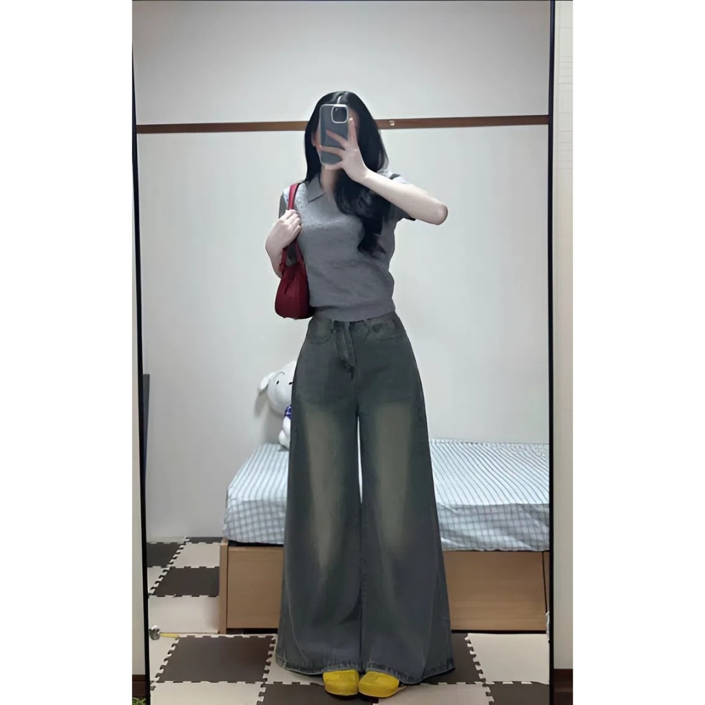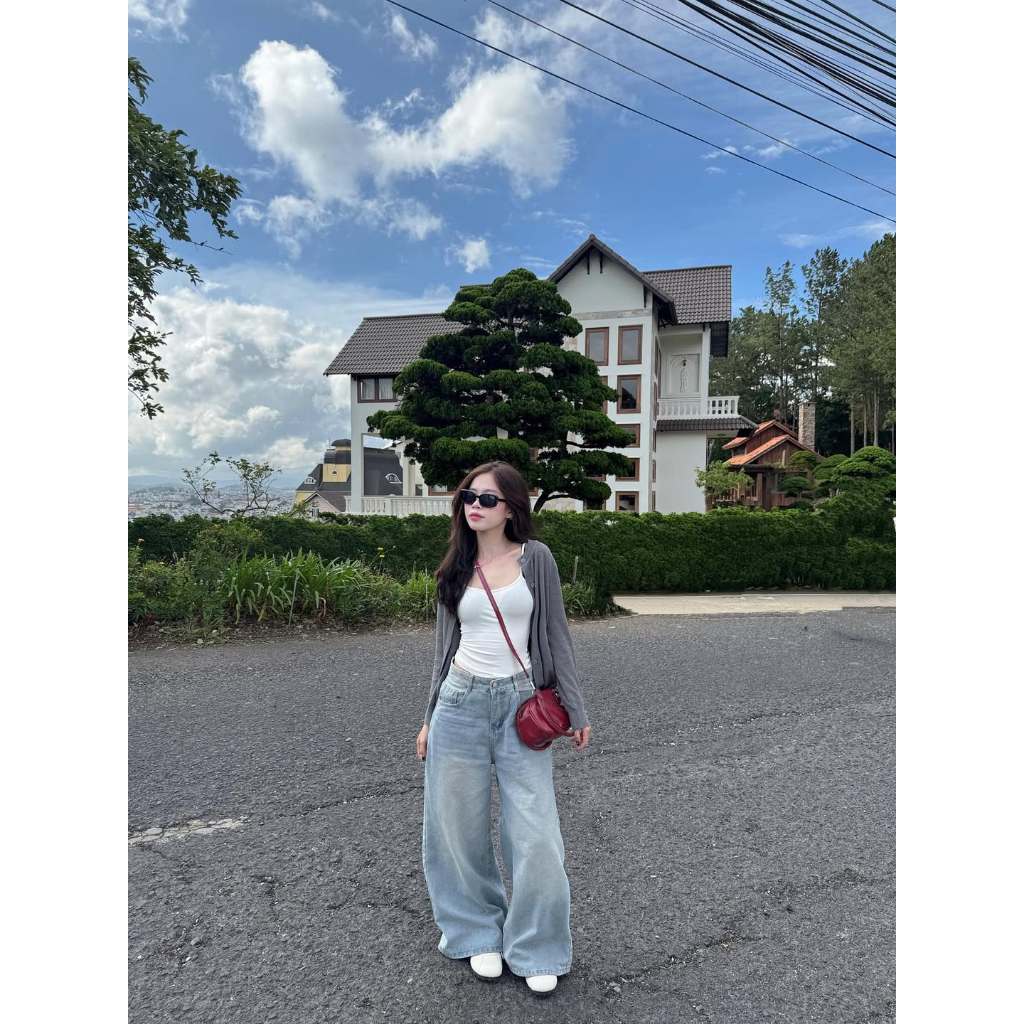 Quần Jean ống Rộng NỮ MIAA Cạp cao ống suông rộng 33cm VER3 màu xanh xám wash trắng bigsize
