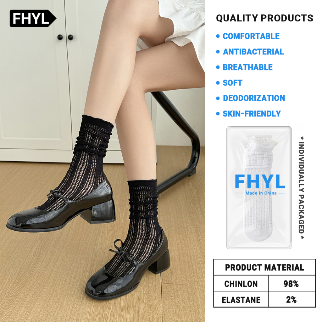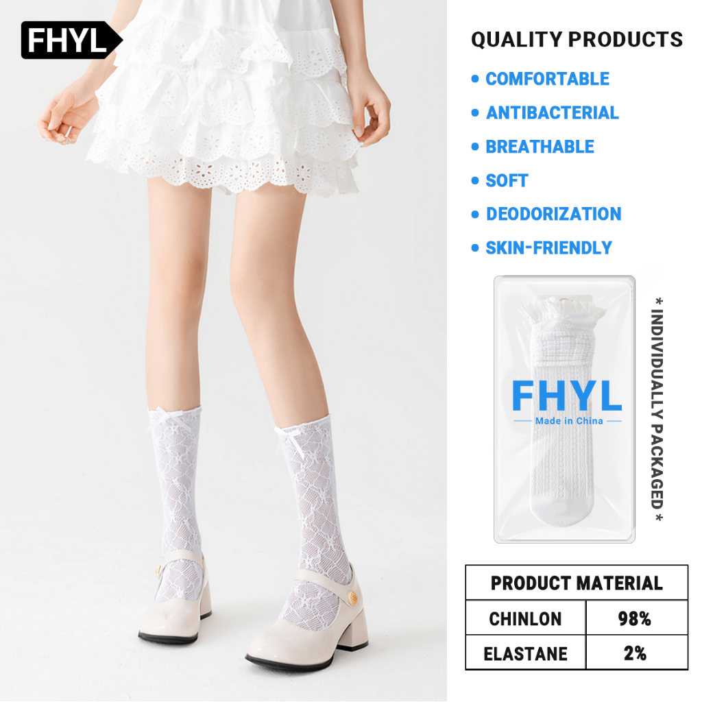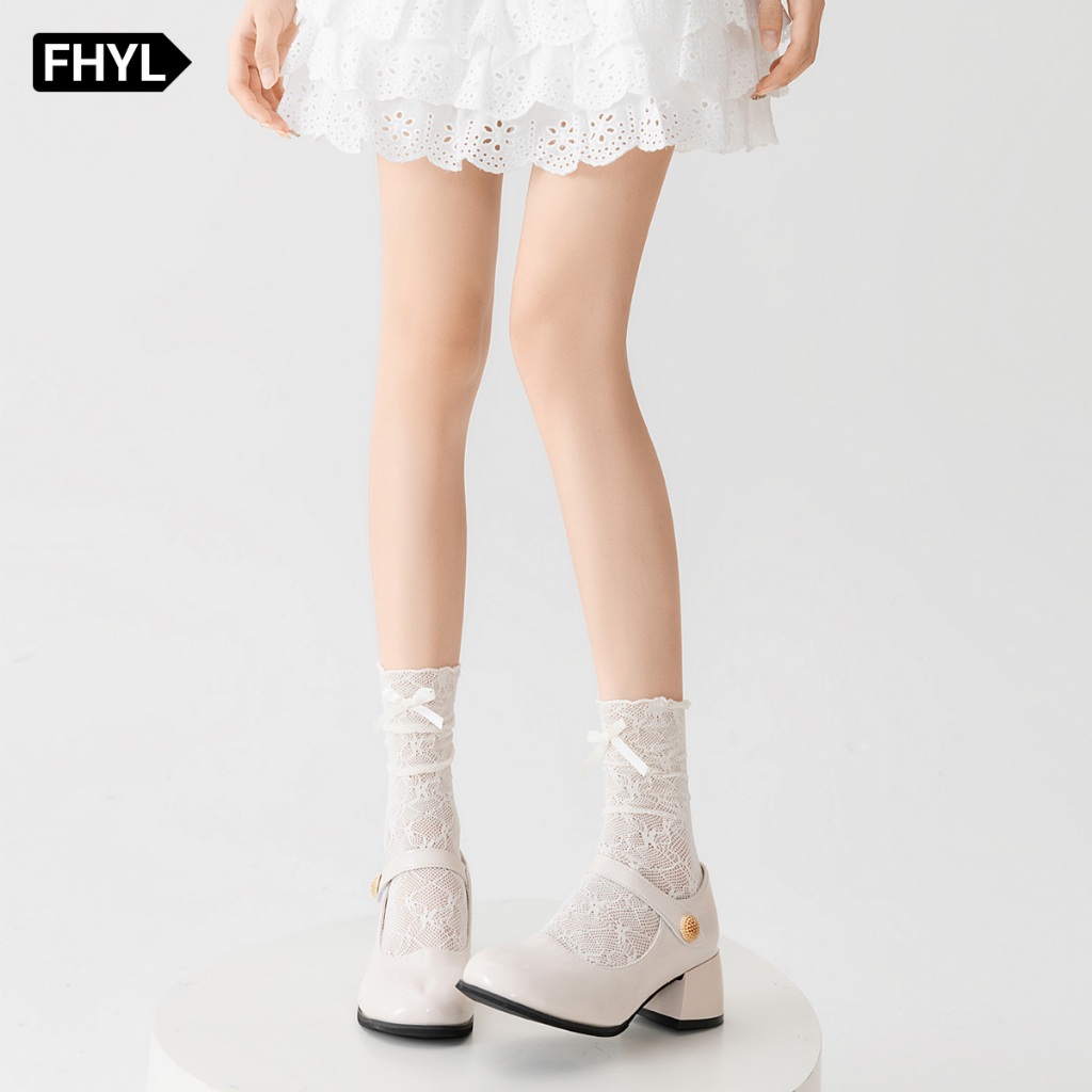 【Hà Nội】 Vớ thụng nữ FHYL ống cao vừa nhiều lớp ren màu trơn đơn giản đính nơ rỗng vintage lolita JK cổ điển Hàn Quốc mùa hè