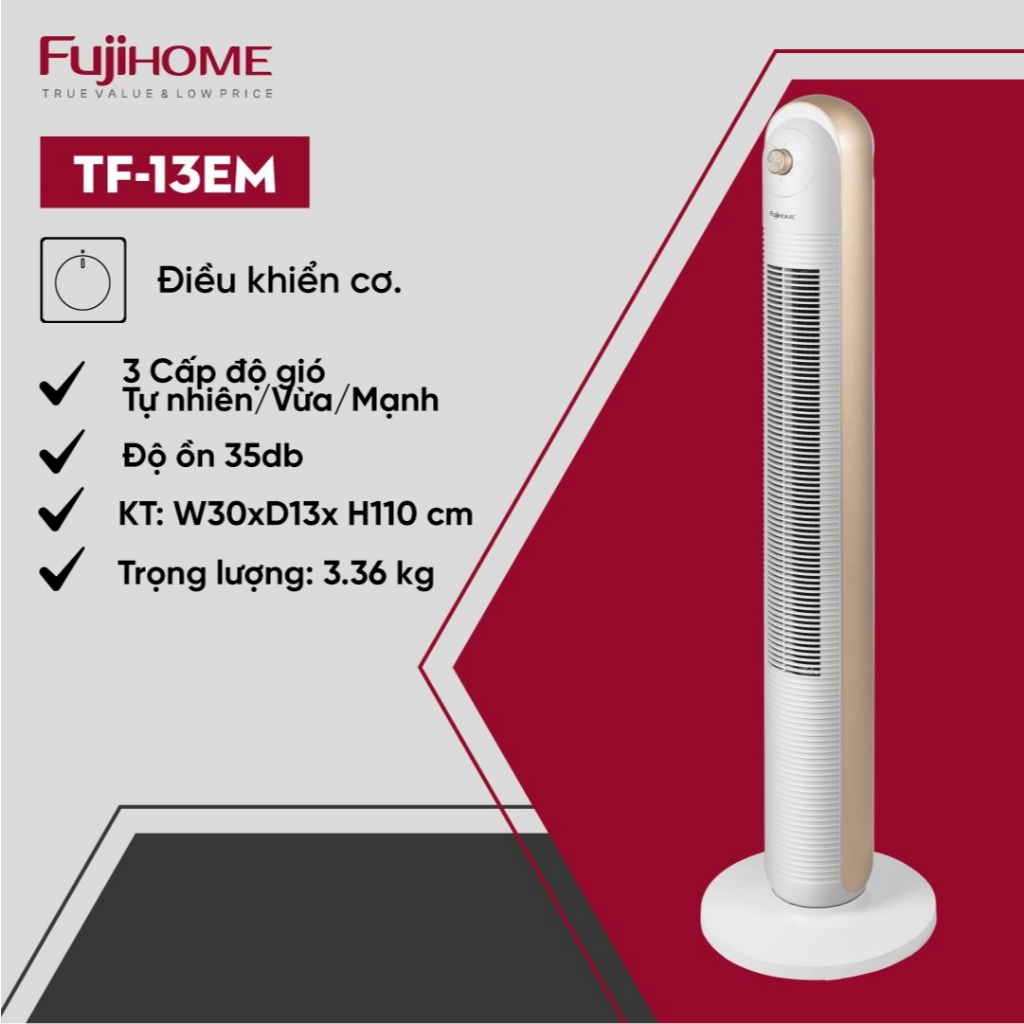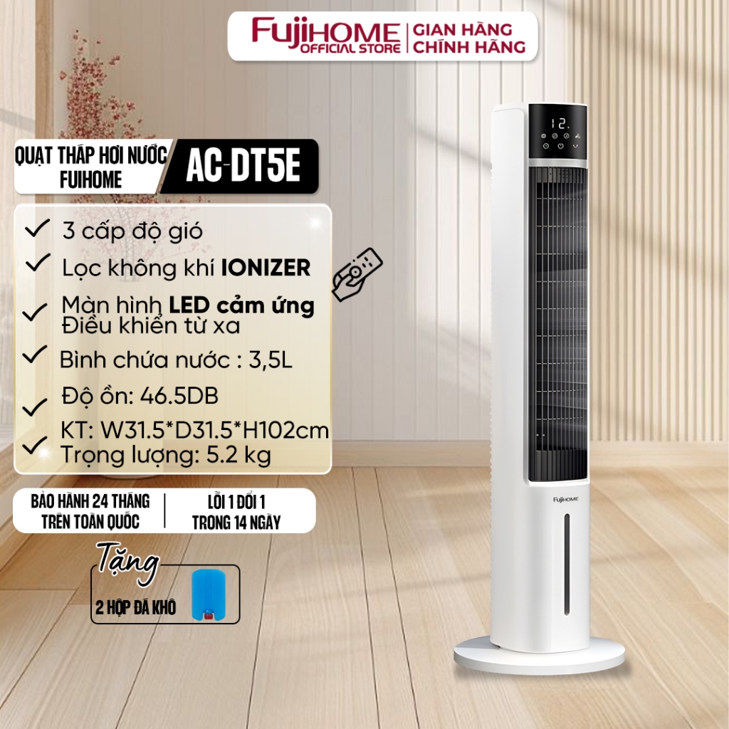 Quạt tháp hơi nước Fujihome nhập khẩu, quạt mát đứng 3 chế độ gió tự nhiên, điều hoà lọc không khí Ionizer diệt khuẩn