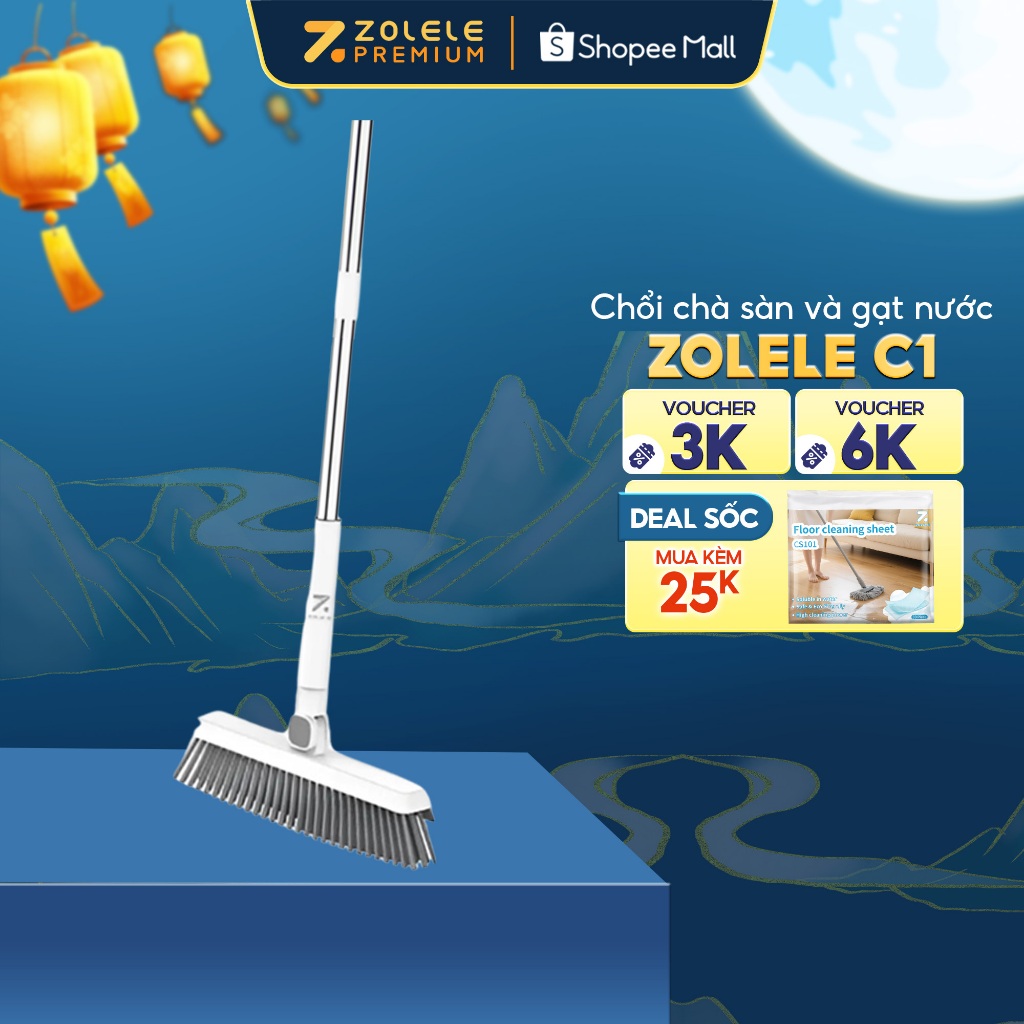 Cây chà sàn nhà tắm, chổi cọ sàn và gạt nước 2 trong 1 Zolele C1