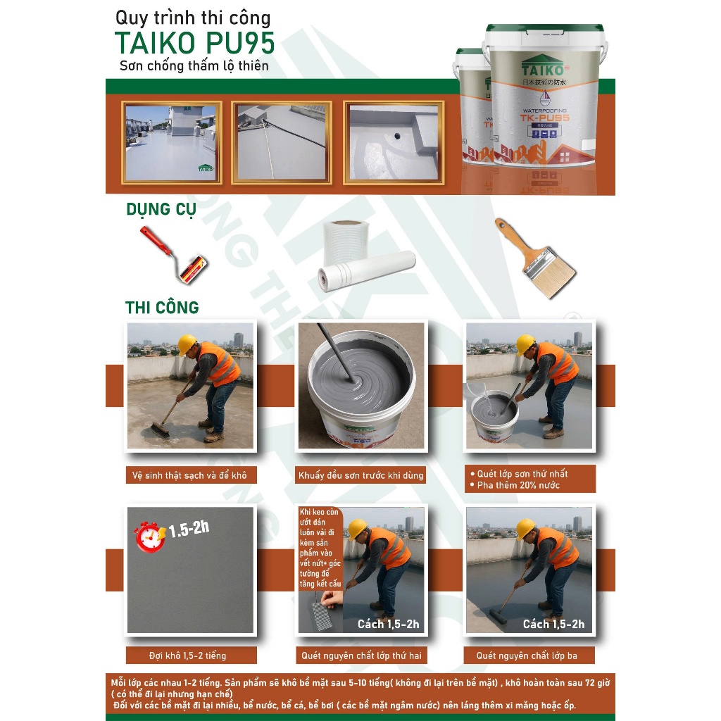 [18 Lít] Sơn Chống Thấm PU (Polyurethane) TAIKO PU95 - Chống Thấm Sàn Lộ Thiên Đã Ốp Lát Đi Lại Nhiều