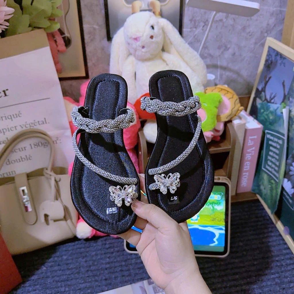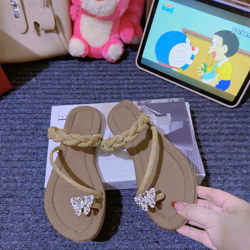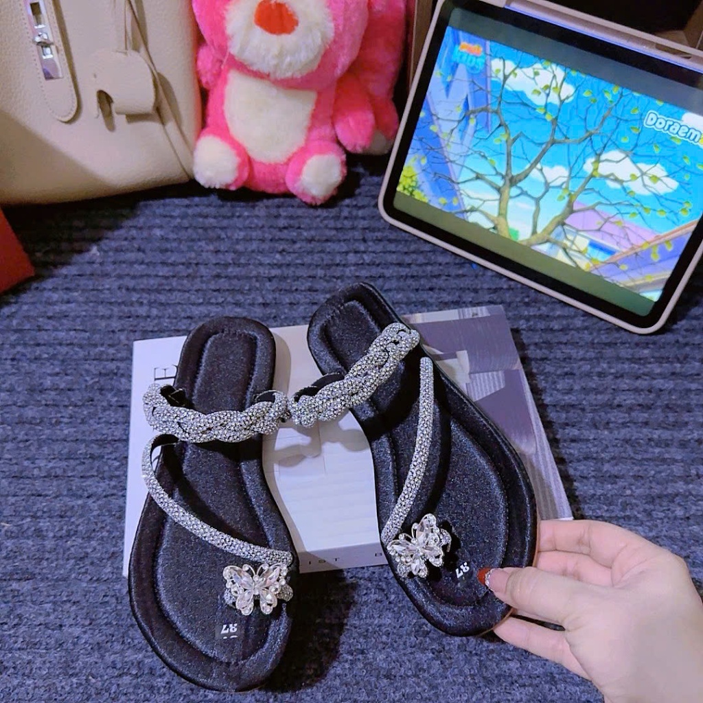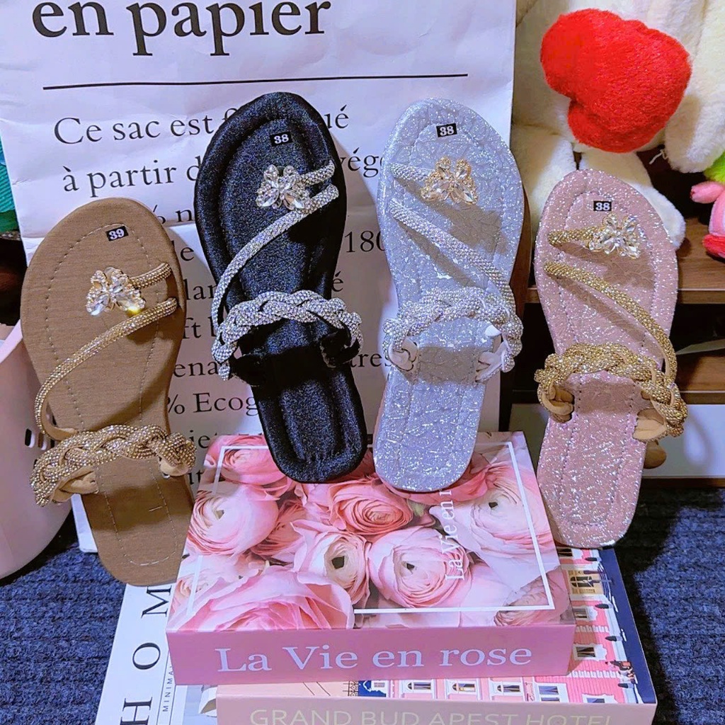 Dép nữ xỏ ngón đính đá đính charm - dép kiểu nữ thời trang quai ngang lấp lánh hottrend