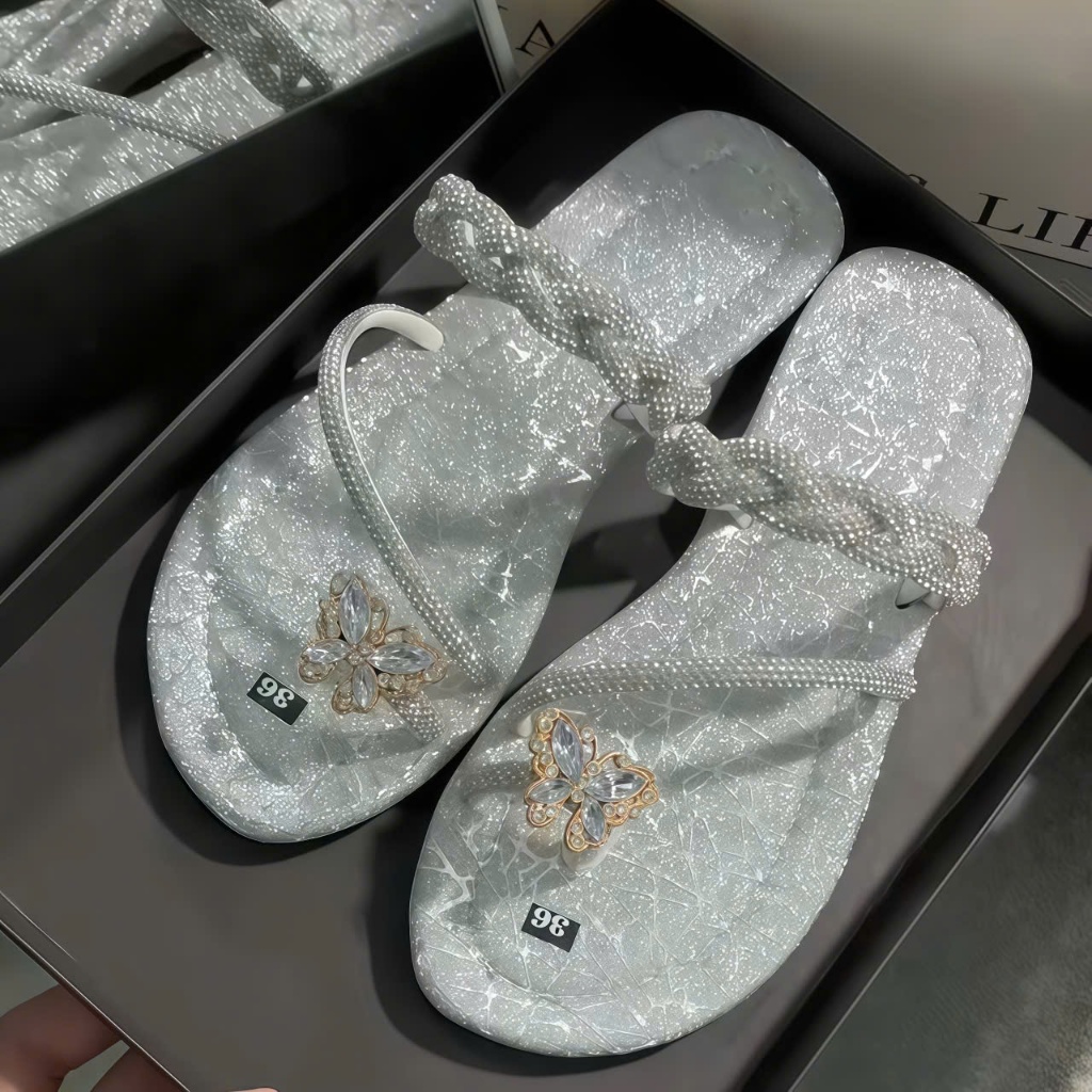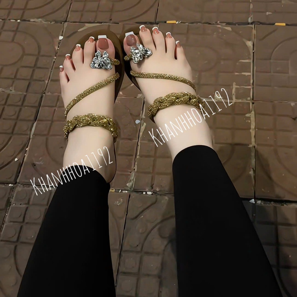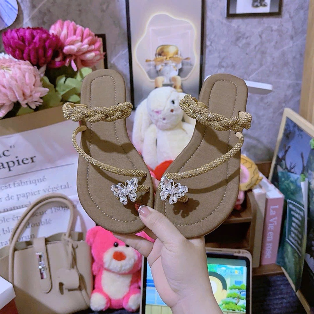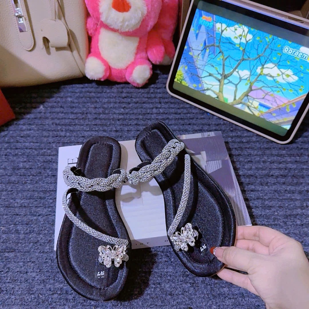 Dép nữ xỏ ngón đính đá đính charm - dép kiểu nữ thời trang quai ngang lấp lánh hottrend