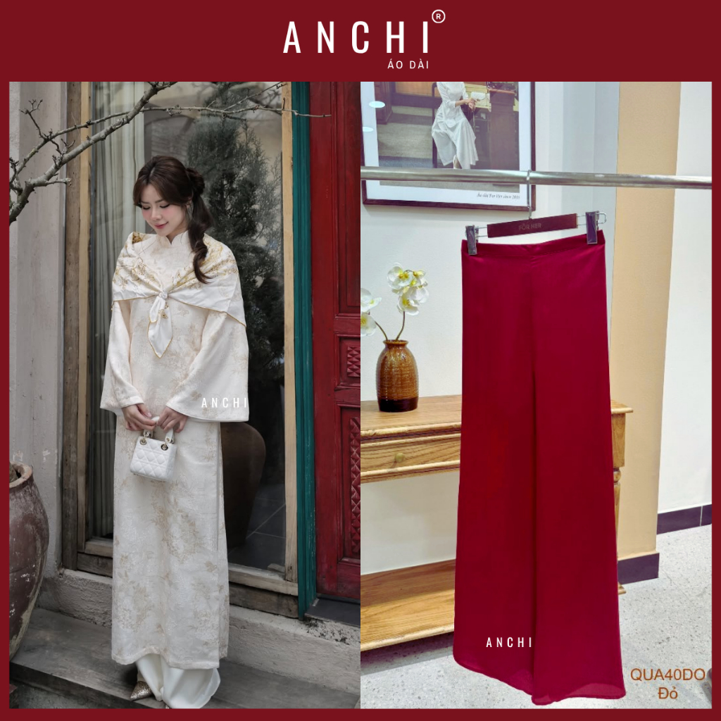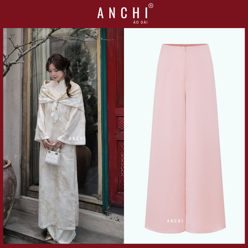 ANCHI - Áo Dài Cách Tân Châu Vũ Tông Màu Da, Chất Vải Gấm Thêu Họa Tiết Dày Dặn Sang Trọng