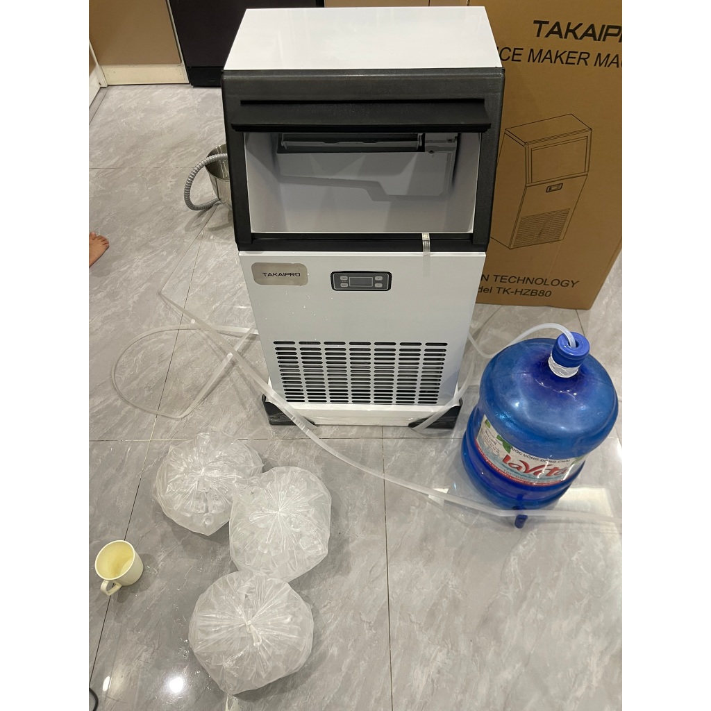 Máy làm đá viên TAKAIPRO 60kg TK-HZB60 - phiên bản 2025 cải tiến 2 nguồn cấp nước linh hoạt ( nước máy+ cắm bình)