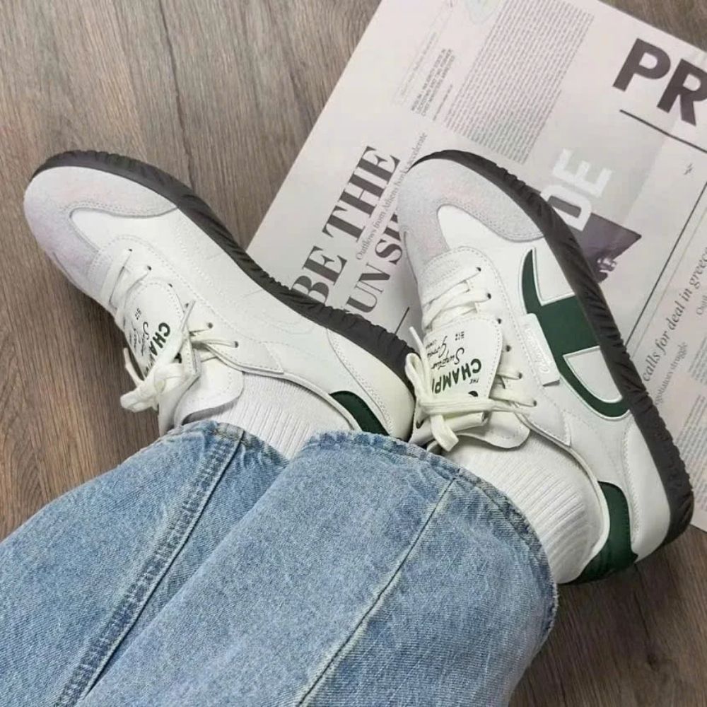 Giày Thể Thao Champion Đen Xanh Bạc, Giày Sneaker Nam Nữ Bản Basic Full Box Bill