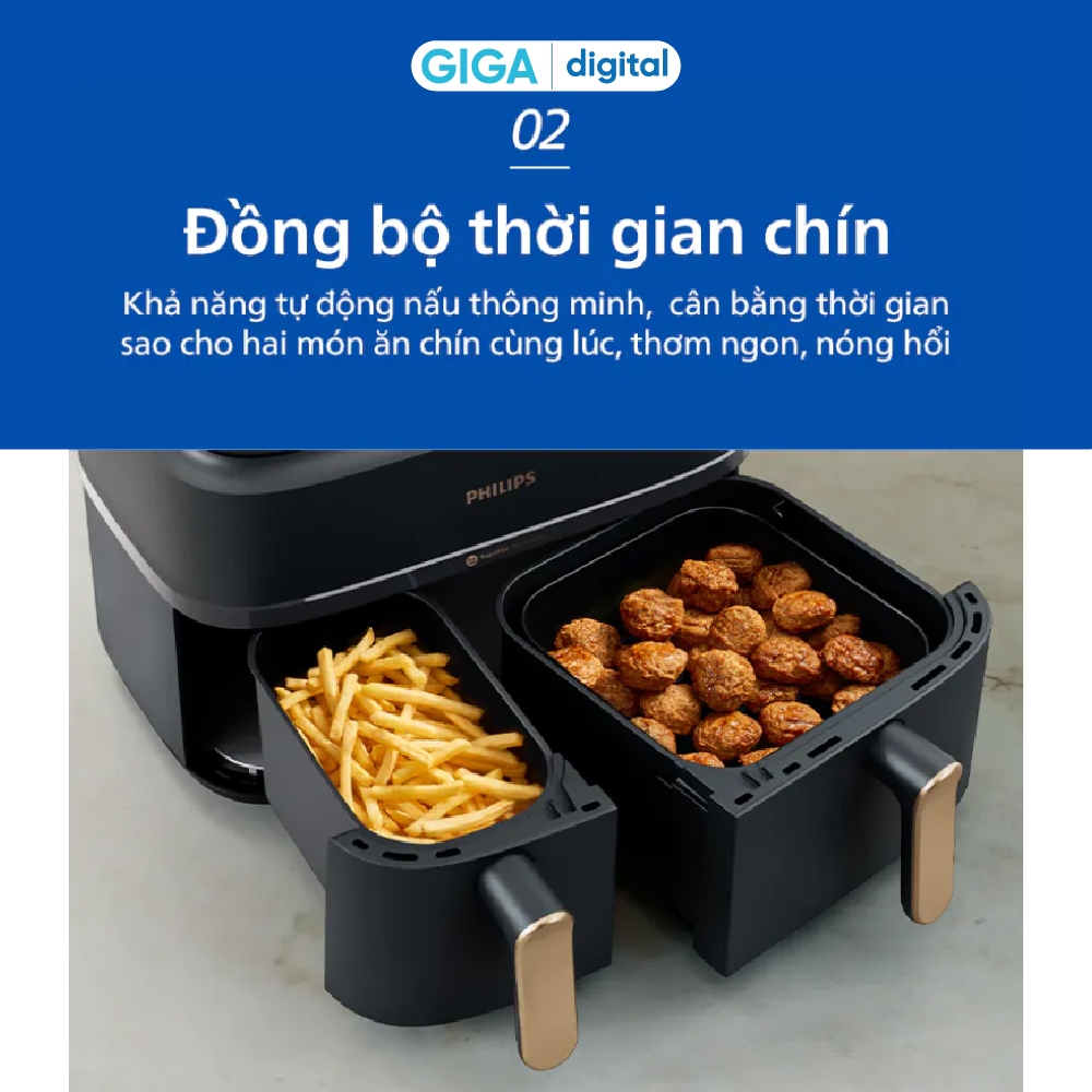 Nồi Chiên Không Dầu 2 ngăn 2 giỏ Philips NA352/00 - Công suất 2750W - 9L - 8 chương trình cài đặt sẵn - Rapid Air Plus