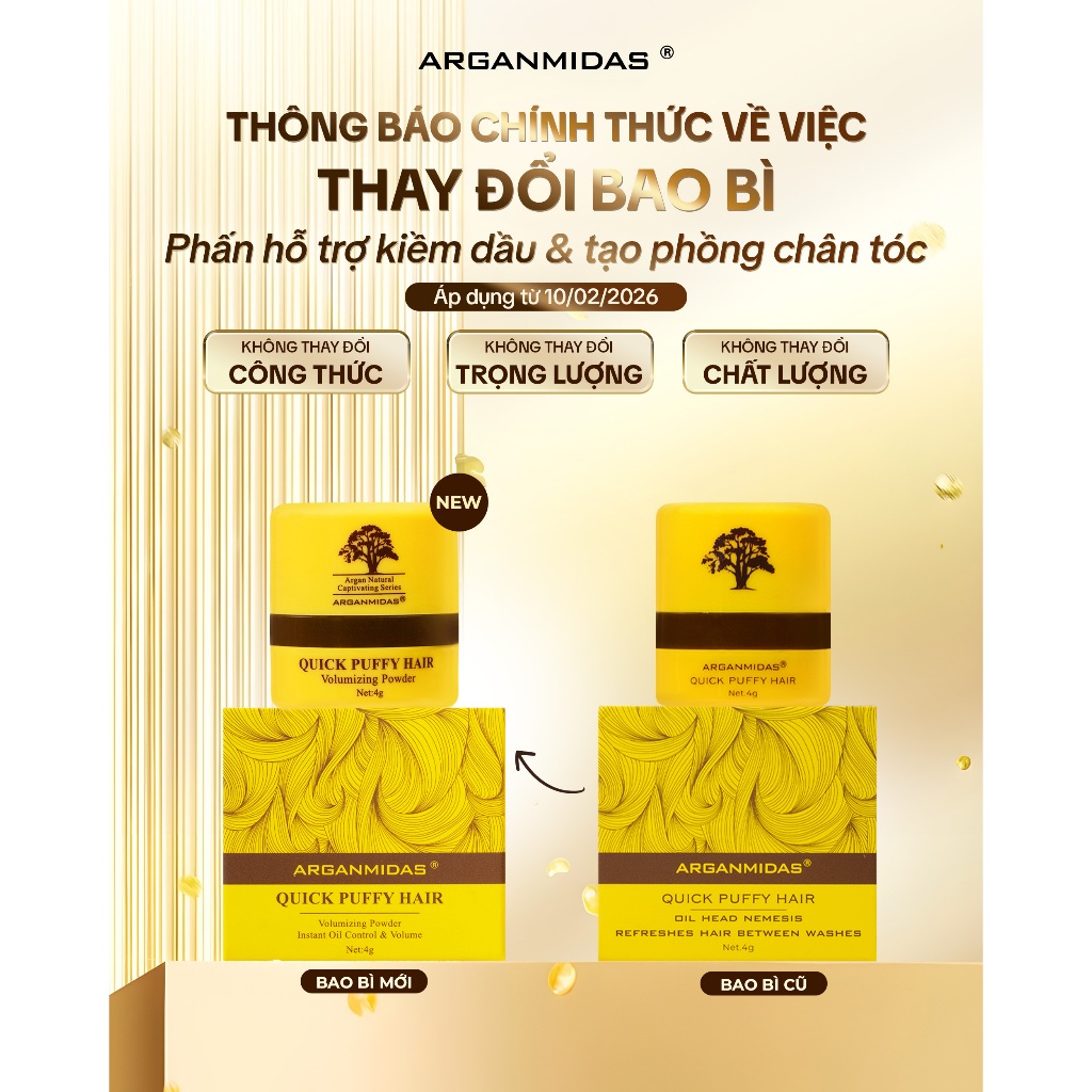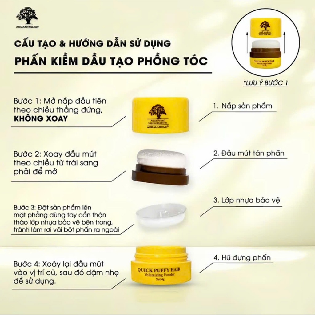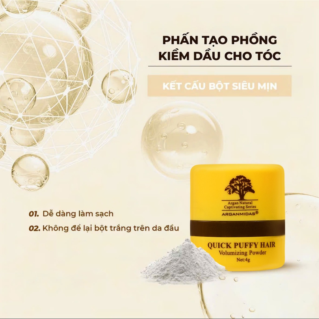 Phấn Kiềm Dầu Tạo Phồng Chân Tóc Arganmidas, Phấn Gội Khô Giúp Tóc Bồng Bềnh
