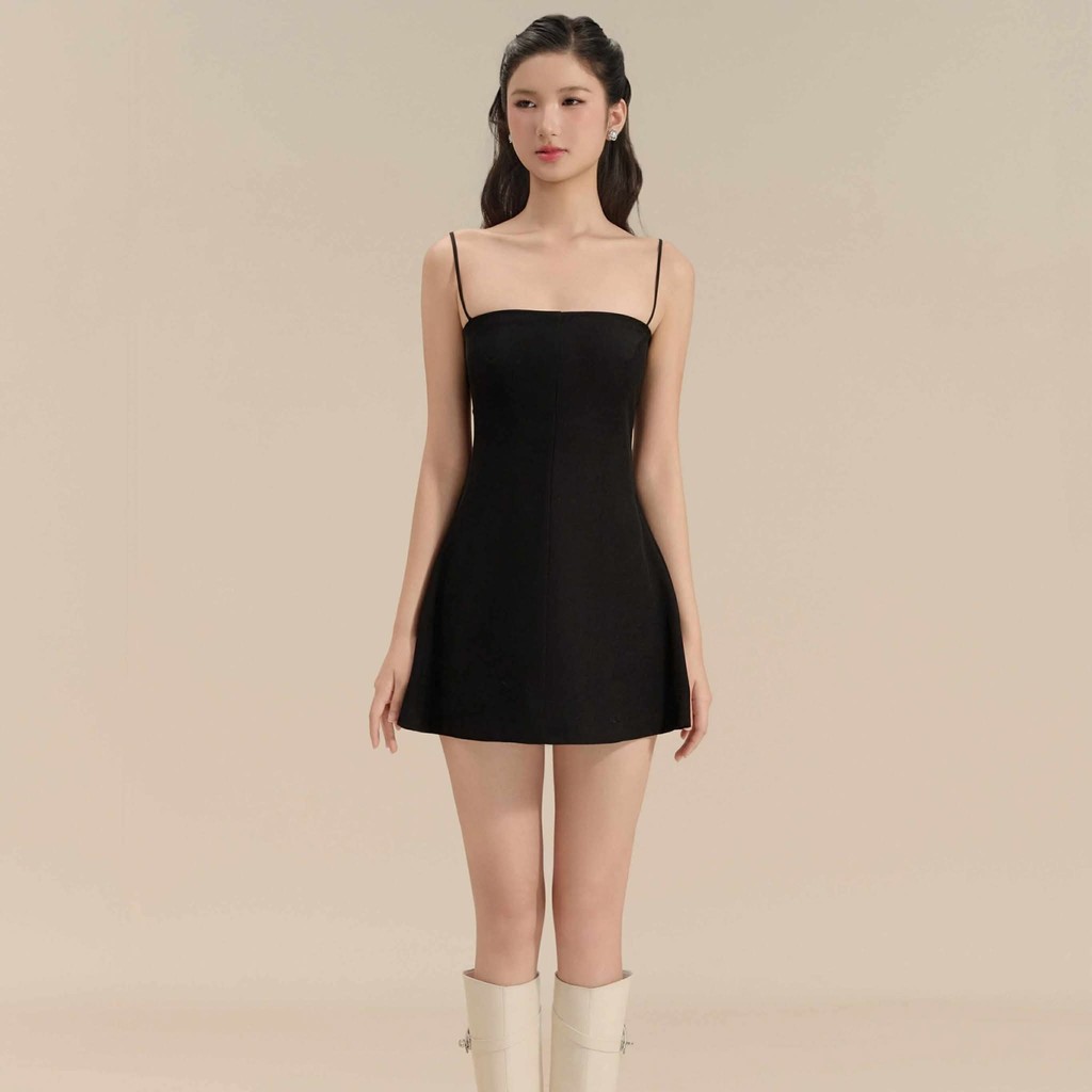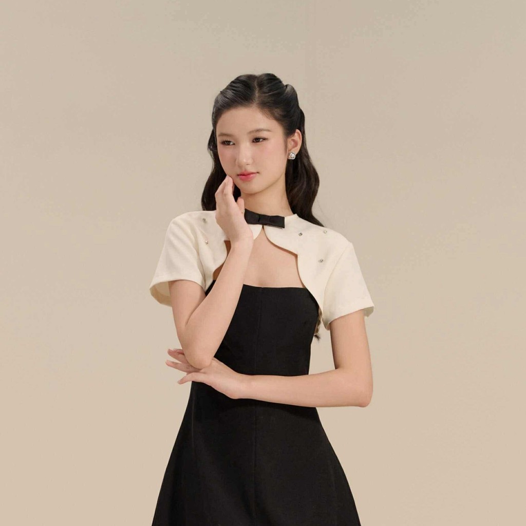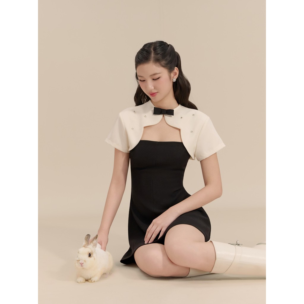 Đầm hai dây chiết eo phối áo choàng Thanh Tú thiết kế AGUJA