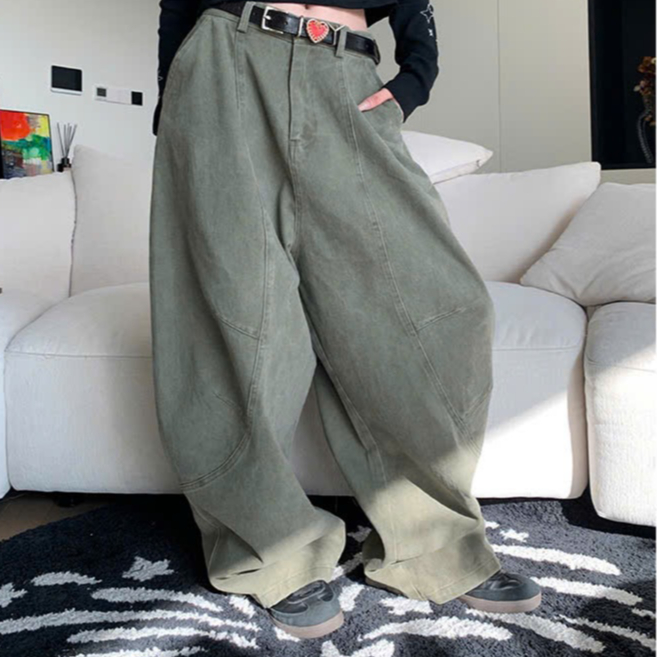 Quần Jean Retro Form Rộng GODMOTHER Quần Jean Harem Cạp Trễ Túi Kiểu Phong Cách Đường Phố Năng Động