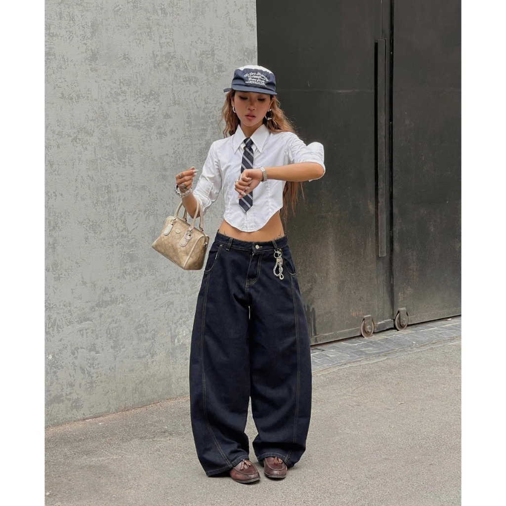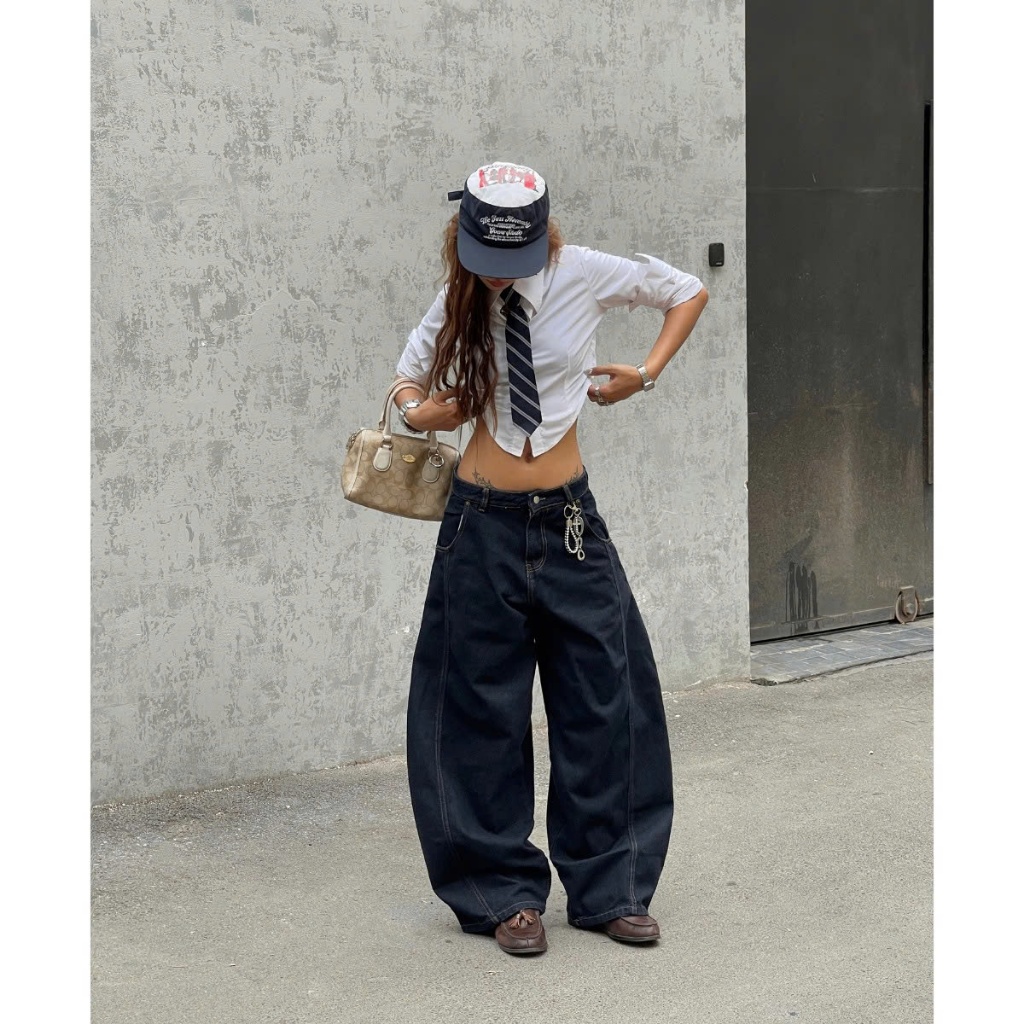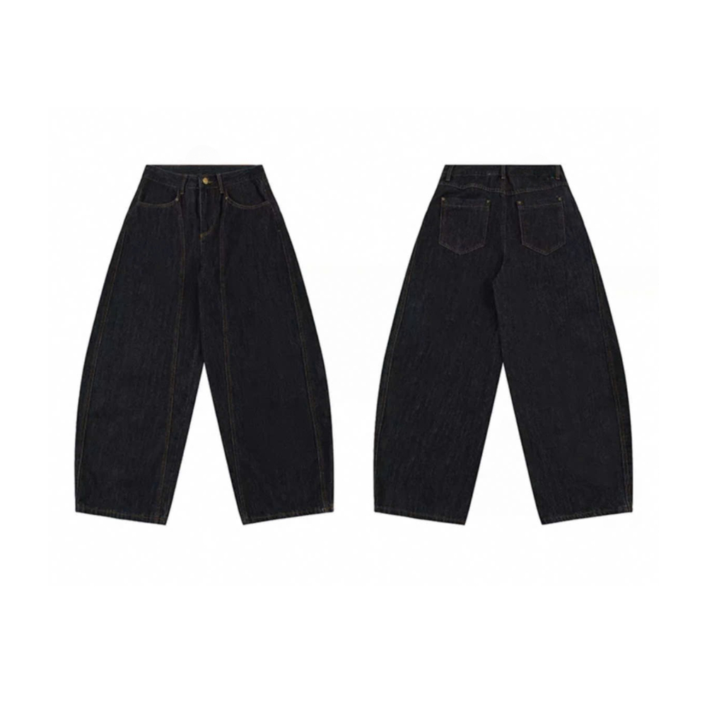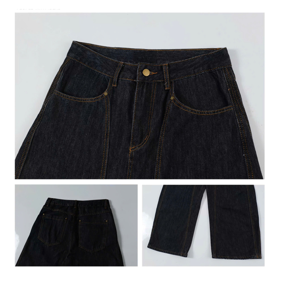 Quần Denim Đen Form Rộng GODMOTHER Quần Jean Cotton Ống Rộng Form Thụng Nam Nữ Unisex