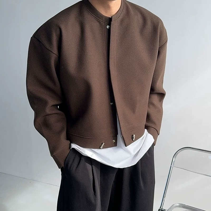 Áo Khoác Dạ Ép Cổ Tàu Phong Cách Retro GODMOTHER 2025 Style Hàn Quốc Form Rộng Tối Giản Lịch Lãm