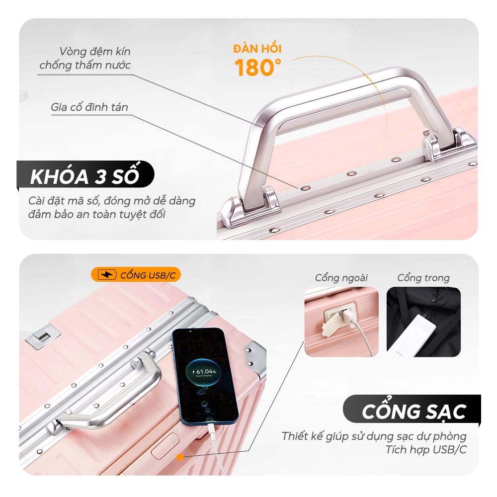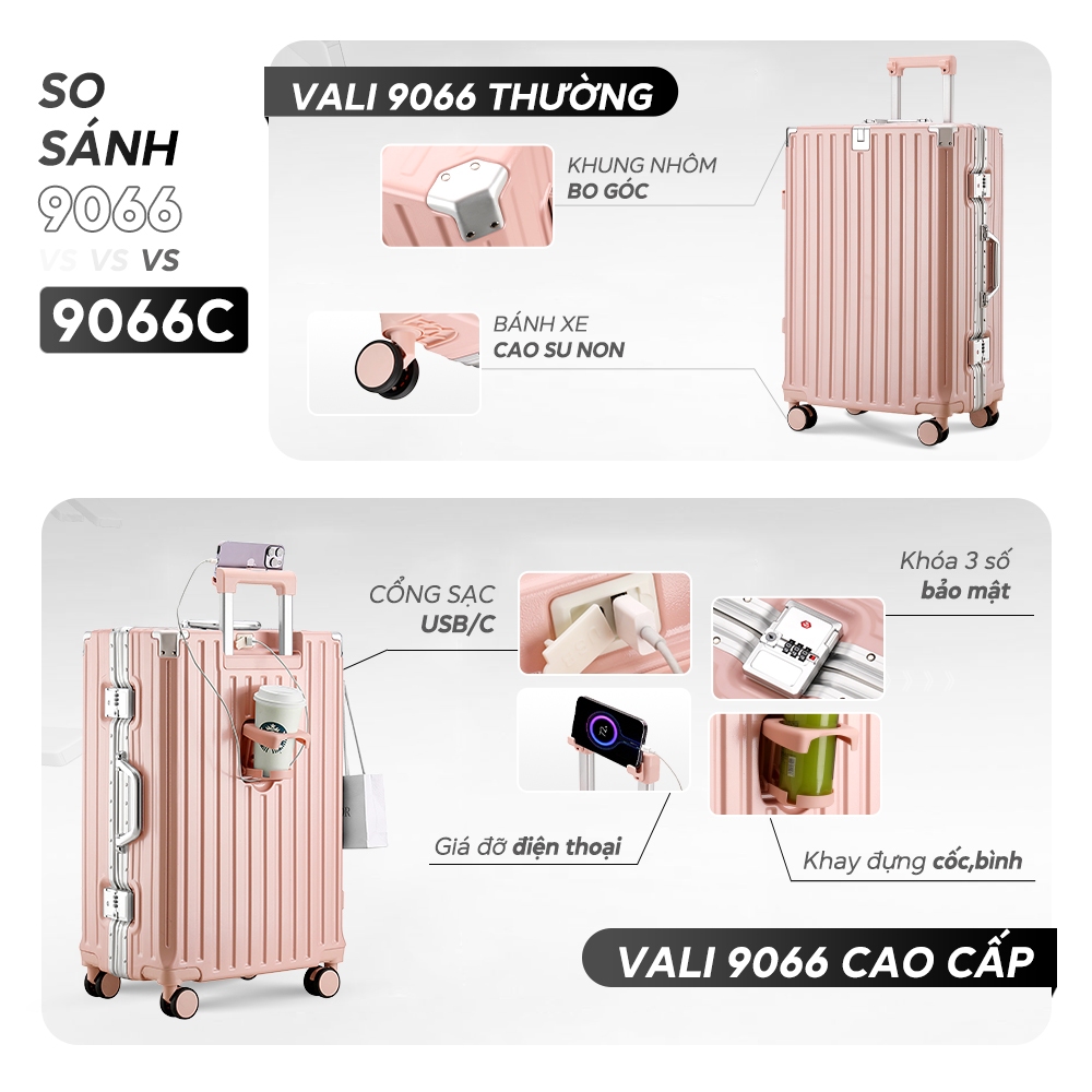 Vali Khung Nhôm Khóa Sập 9066 Bamozo Size 20/24/28 Bịt Góc Kim Loại Chống Va Đập Bảo Hành 5 Năm_9066