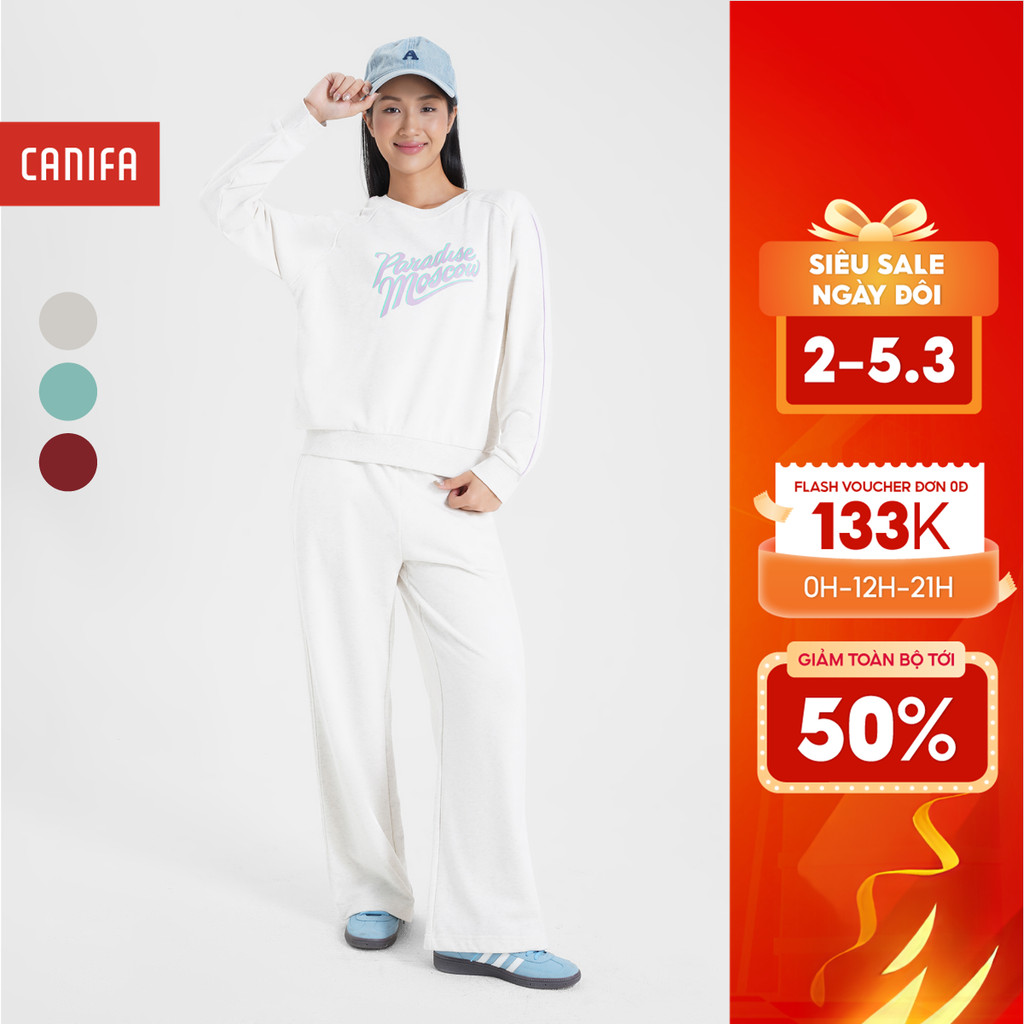 Bộ quần áo nữ CANIFA dài tay có hình in 6ST24W002
