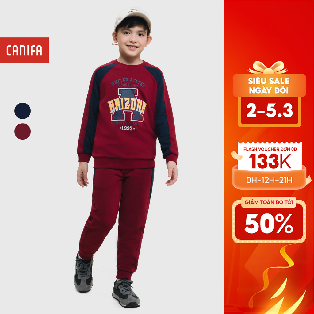 Bộ quần áo bé trai CANIFA bộ nỉ đông áo dài tay quần dài dày dặn siêu ấm PS25 2ST25W010