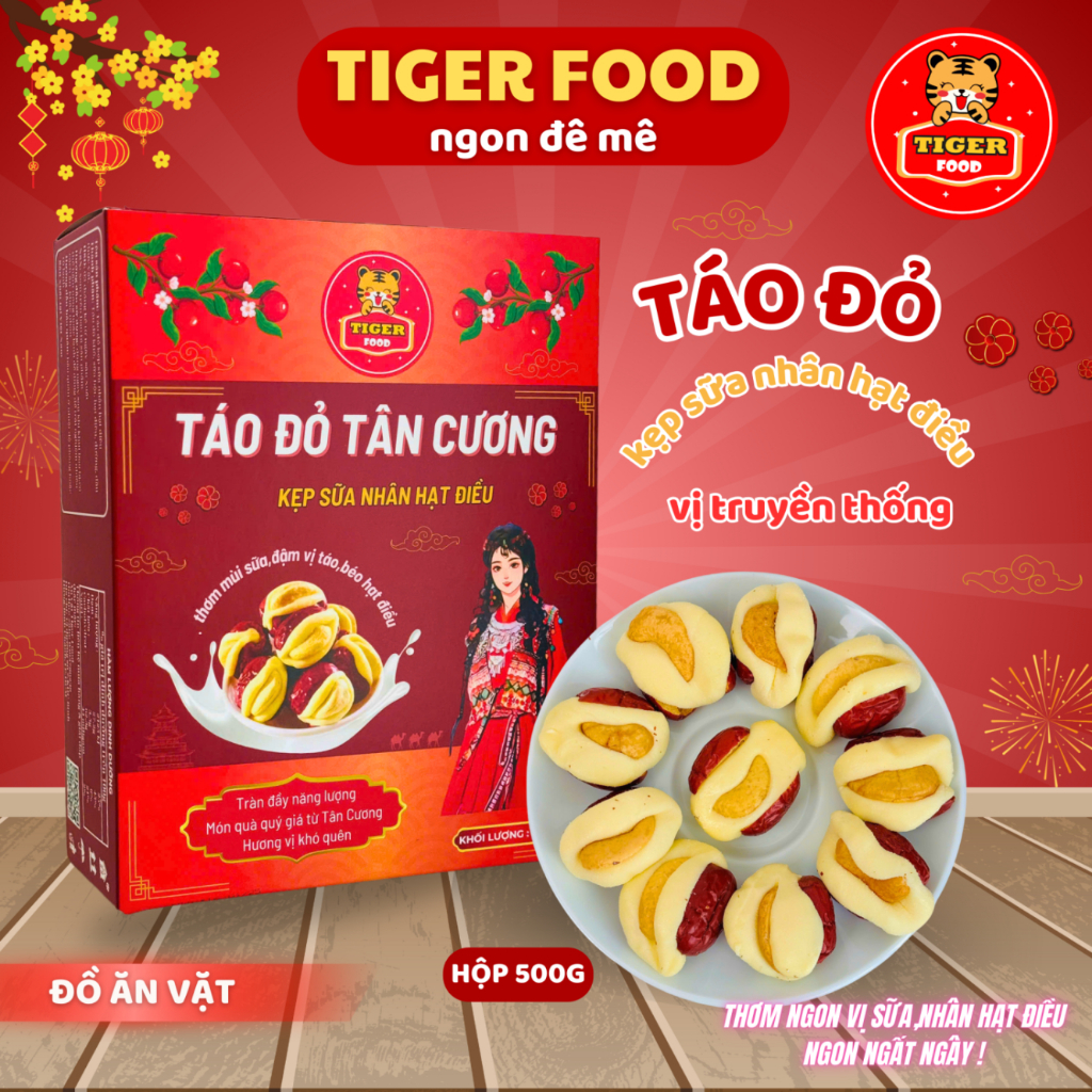 Táo Đỏ Kẹp Sữa Nhân Hạt Điều Mix 3 Vị TIGER FOOD Táo đỏ Tân Cương kẹp sữa nhân hạt điều - Đồ ăn vặt kẹo snack thức ăn