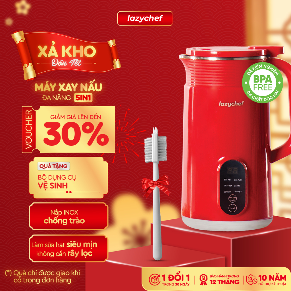 Máy làm sữa hạt đa năng 5in1 LazyChef, nấu cháo, xay sinh tố, chống trào, độ ồn thấp bảo hành 12th