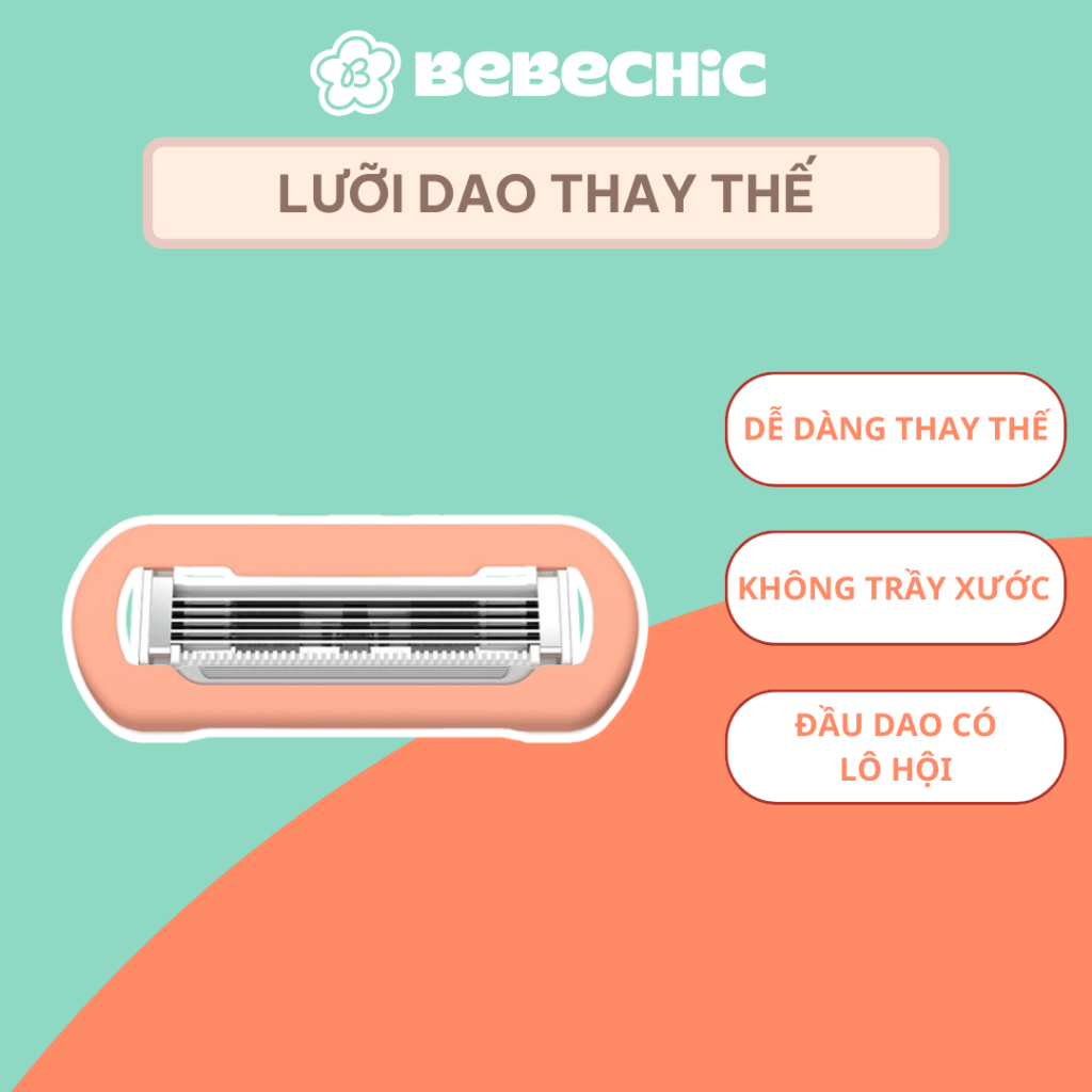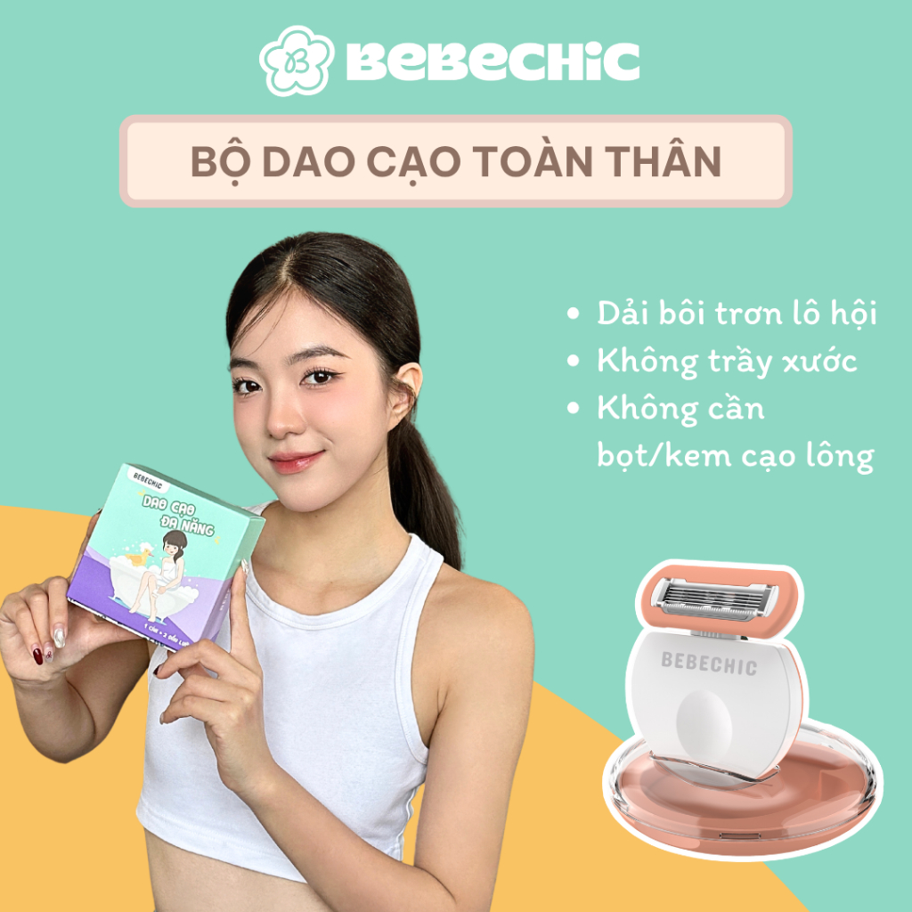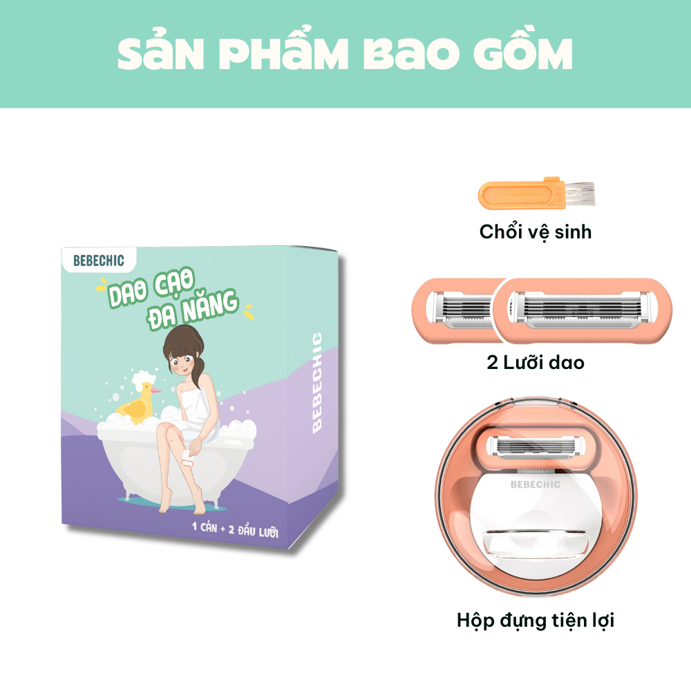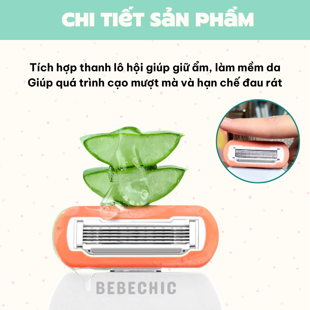 Bộ Dao Cạo Nữ BEBECHIC Cạo Lông Toàn Thân Và 2 Đầu Lưỡi Lô Hội, Không Cần Kem Bọt, Không Kích Ứng Da