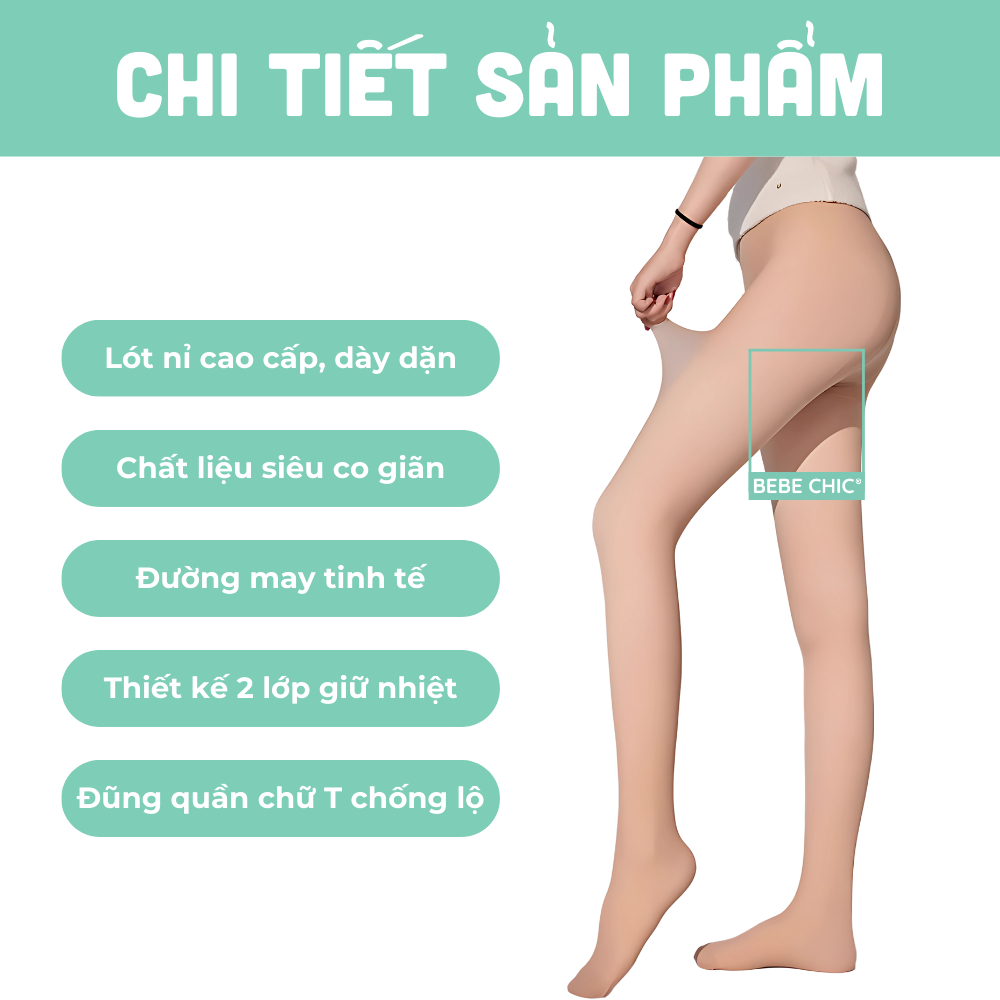 Quần Tất Giữ Nhiệt 2 Lớp BT14 BEBECHIC Cao Cấp Lót Nỉ Dày Dặn, Ôm Sát, Che Hoàn Toàn Khuyết Điểm