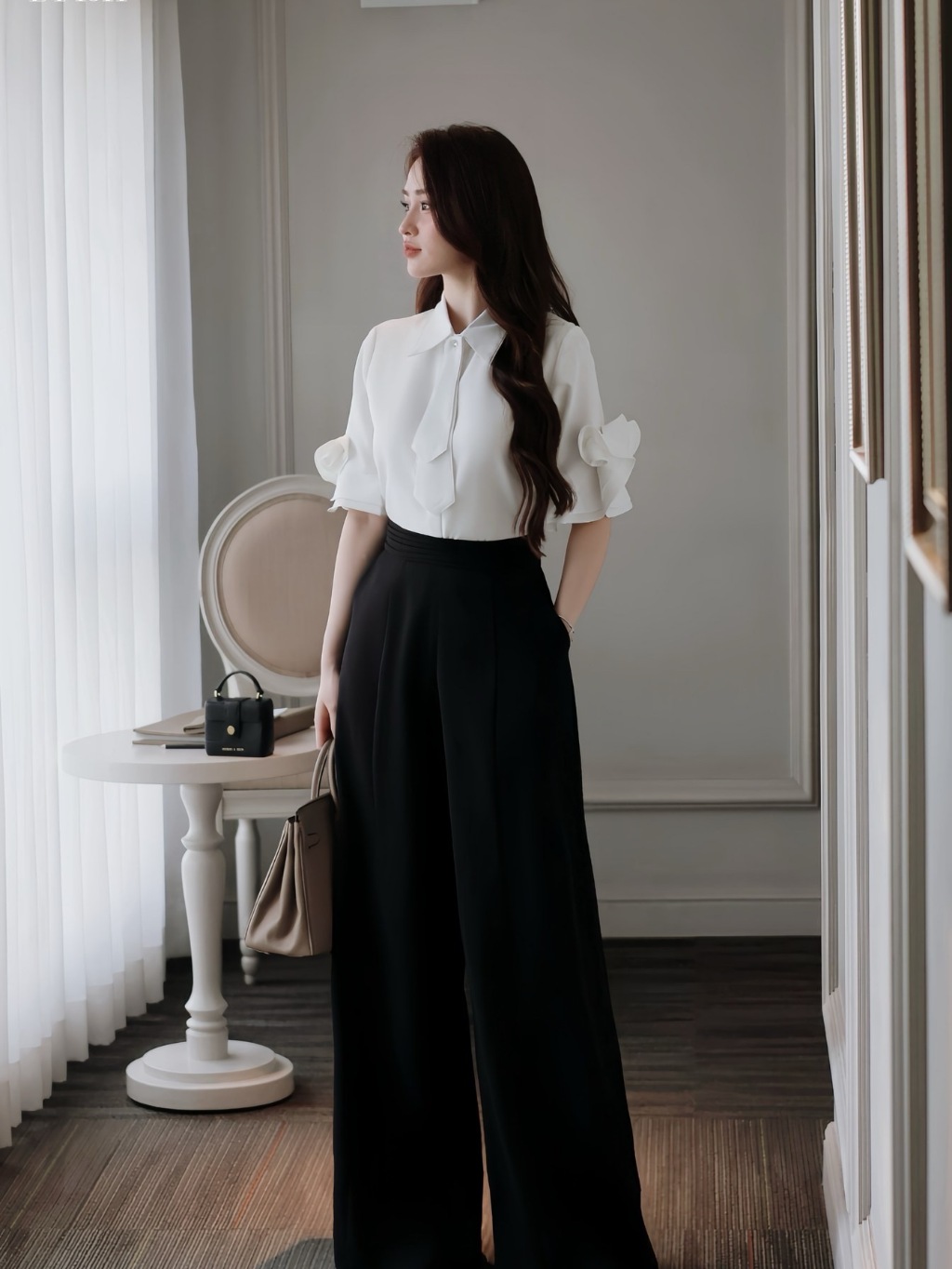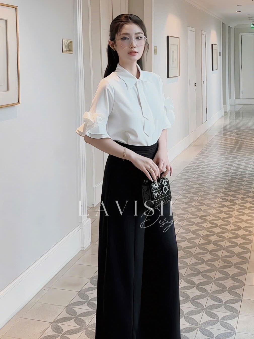 Set Áo Kiểu Tay Bèo Cùng Quần Suông Thanh Lịch Chất Liệu Cao Cấp Thoải Mái, Phù Hợp Nhiều Dịp Lavish Design - S1210