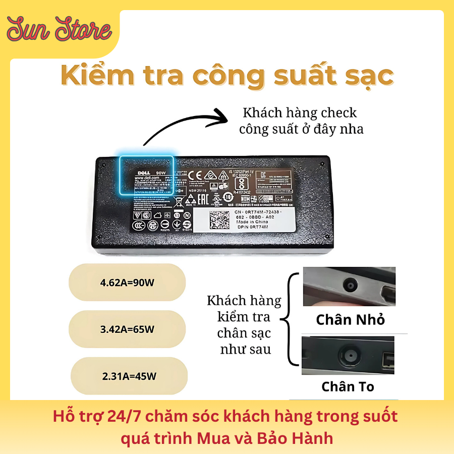 Sạc Laptop DELL Chân To Chân Nhỏ 45W/65W/90W Sạc máy tính DELL Inspiron Latitude Vostro Bảo Hành 24 tháng Lỗi Đổi Mới