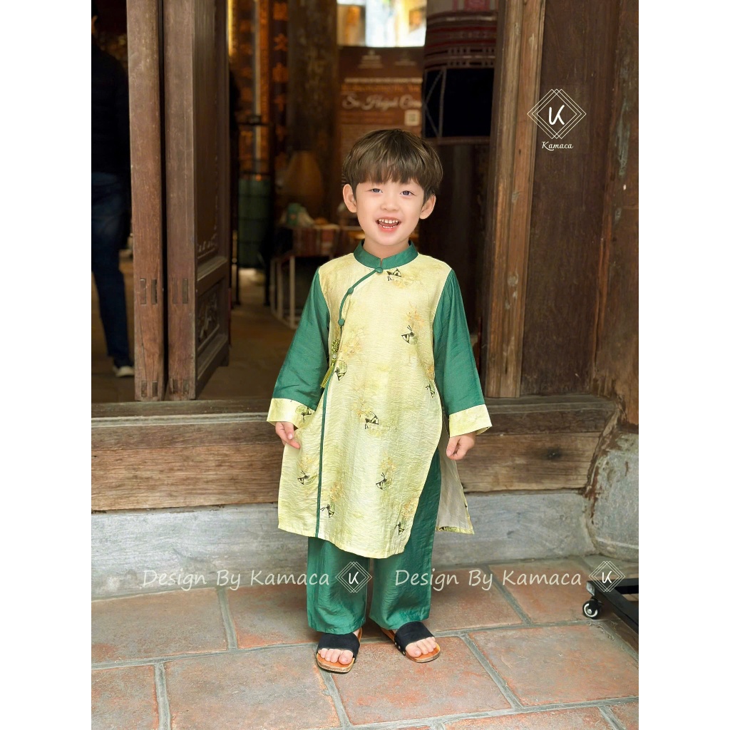 Bộ Áo dài Bé Trai, Áo dài Bé gái KAMACA, Chất liệu tơ tencel và đũi - AD Nhã Phong