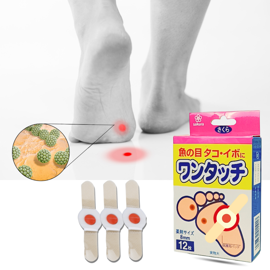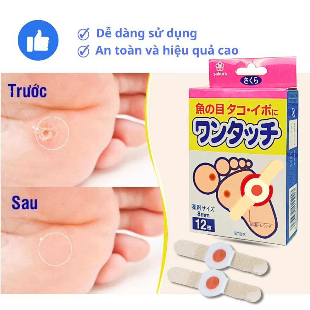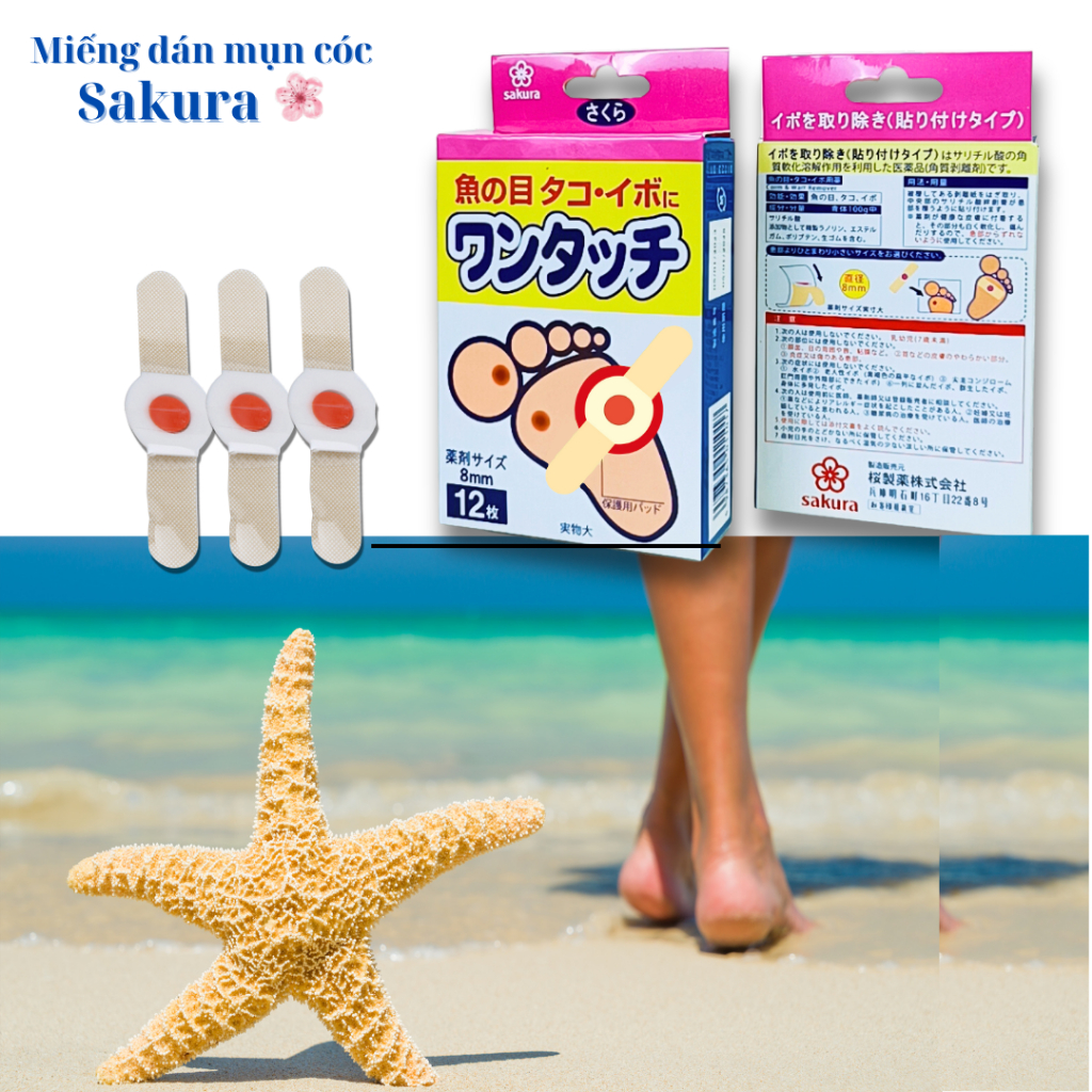 Miếng dán mụn cóc Nhật Bản SAKURA (hộp 12 miếng). loại bỏ mụn cóc, mụn cơm, chai chân an toàn và hiệu quả - Loki.vn