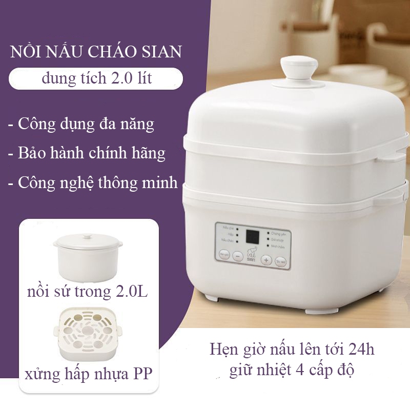 Nồi nấu cháo cho bé SIAN 1.0L ❤️Tiếng Việt - Chính Hãng❤️nấu chậm ninh xương chưng yến hầm cách thủy bảo hành 6 tháng.