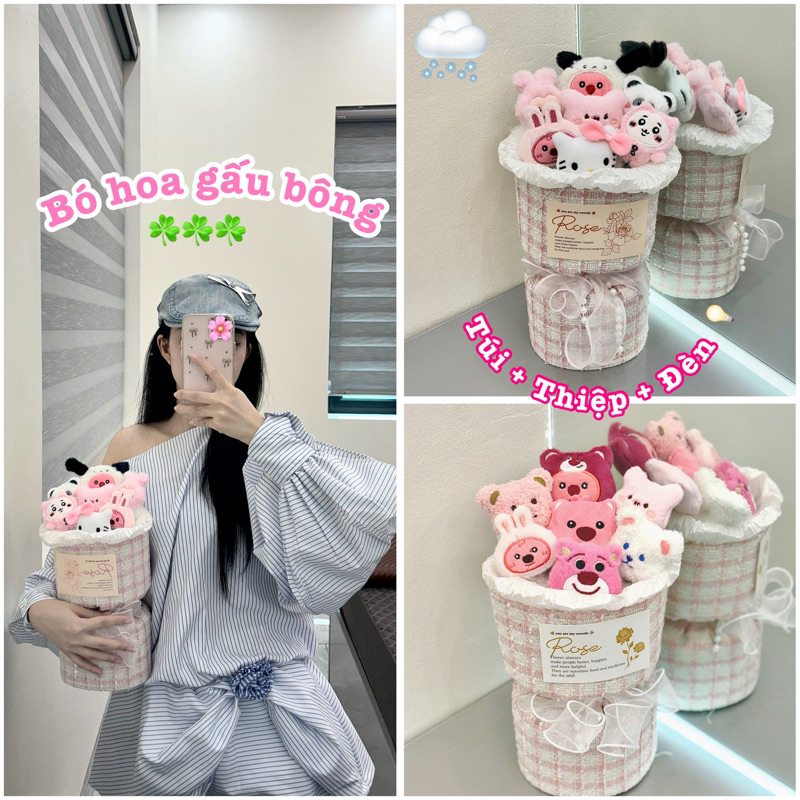 [ 🔥ĐÈN+TÚI+THIỆP IBó hoa gấu bông nhiều màu xinh xắn, quà tặng bạn gái xinh dịp noel, 8/3 14/2,........