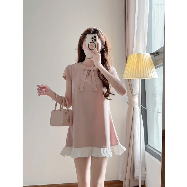 Váy ngắn cổ tròn XIXEOSHOP dáng chữ A phối bèo phong cách hàn quốc - V24