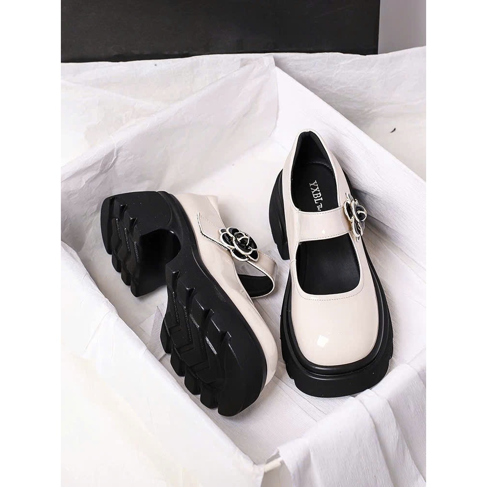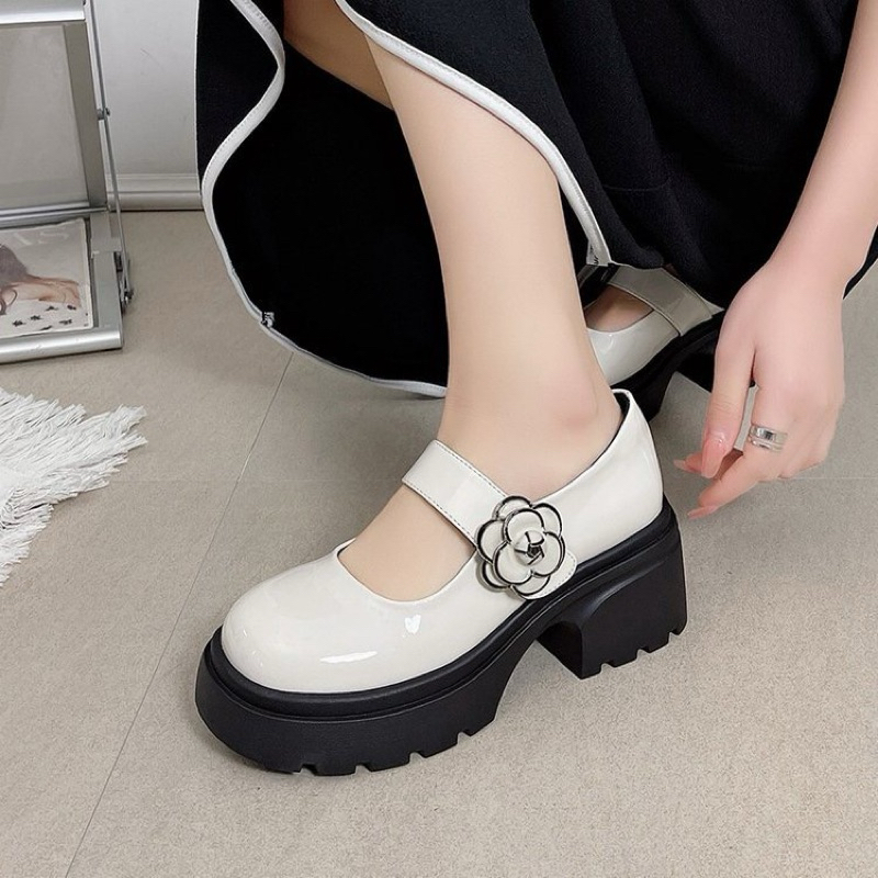 GIày đốc HOA TRÀ nữ 2 màu đế cao 6cm dễ phối đò thời trang mới 2025