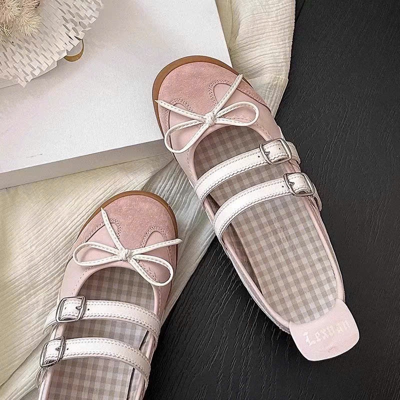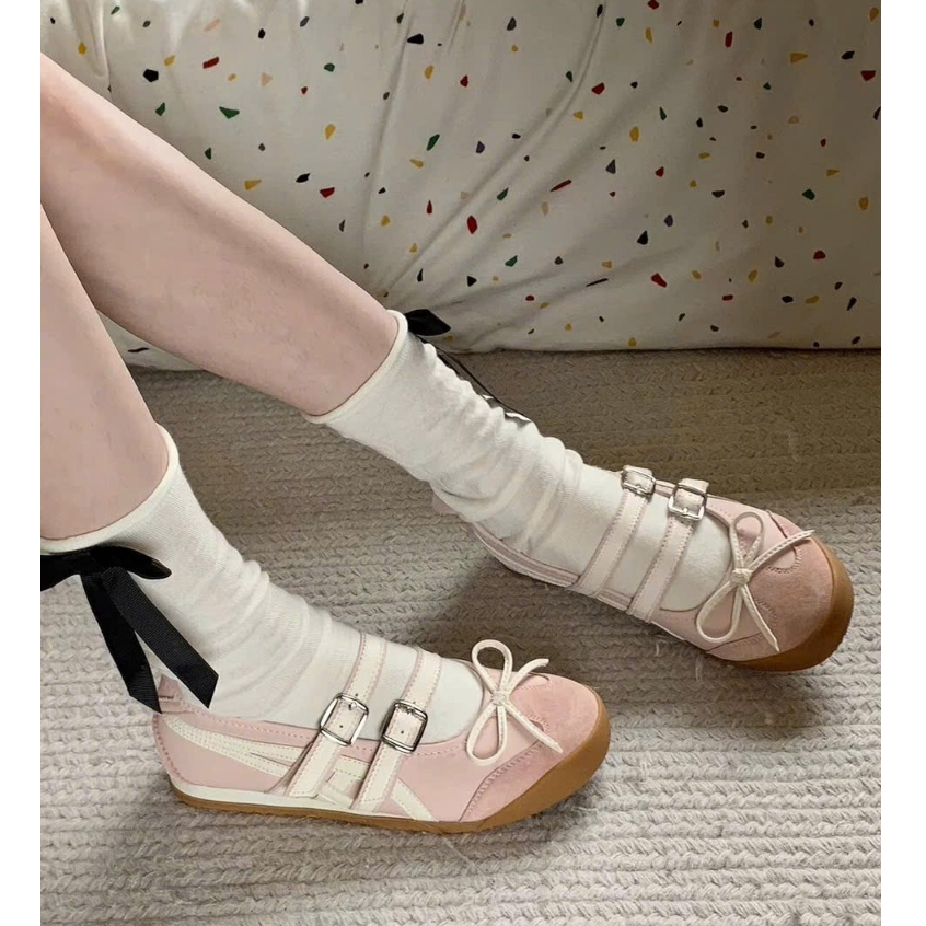 [PHẢI LÙI 1 SIZE ] Giày thể thao nữ 2 quai gắn nơ NAMI đế êm nhẹ