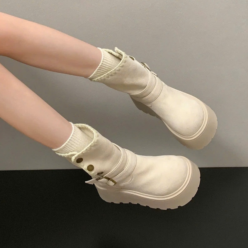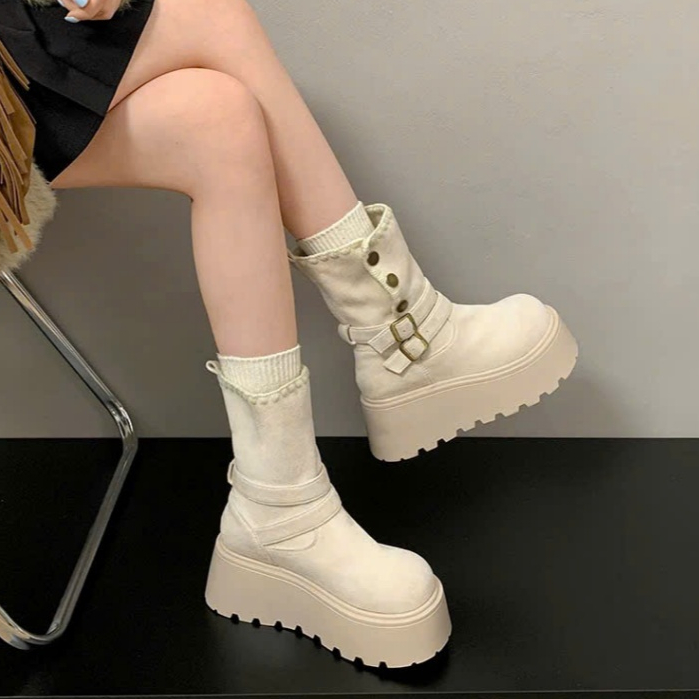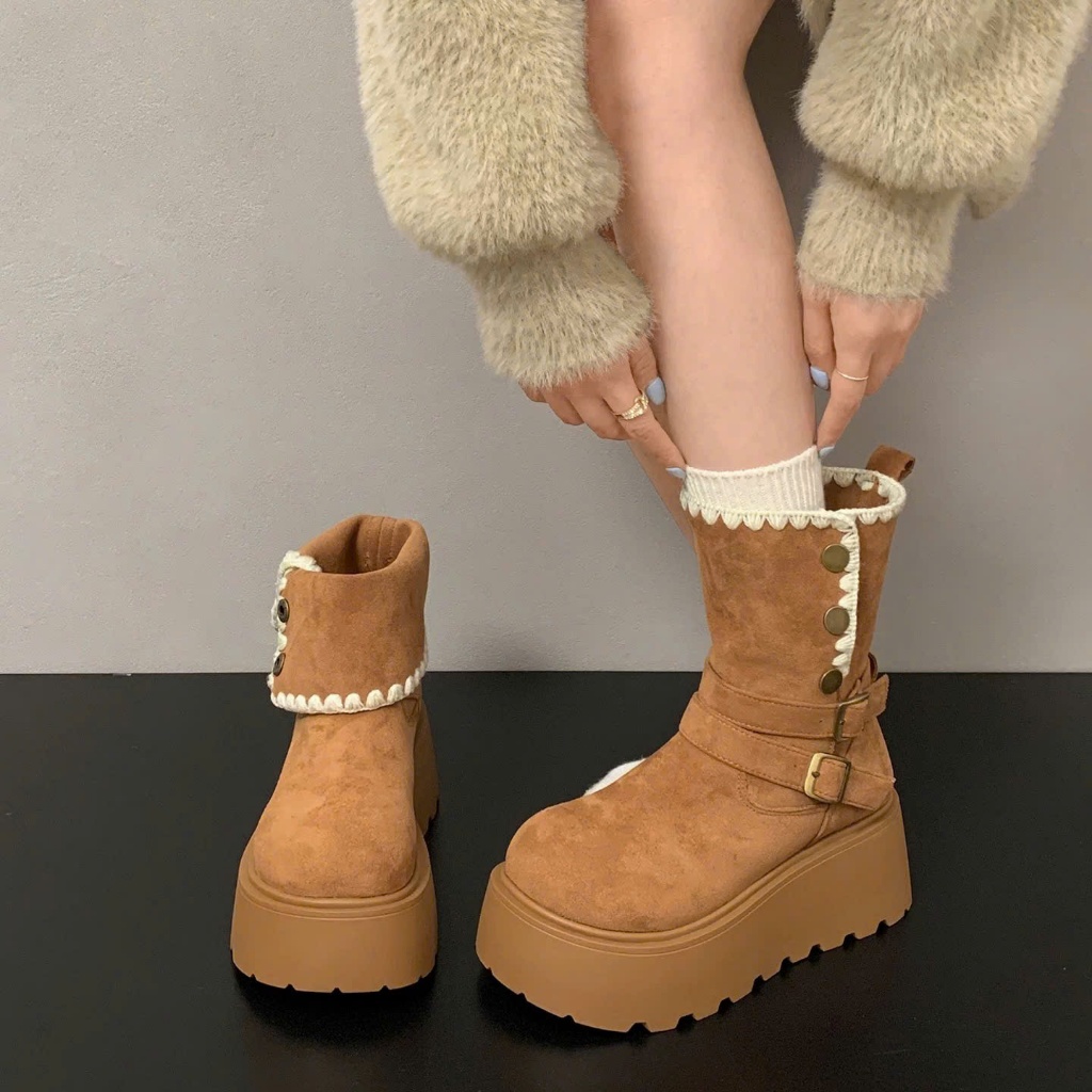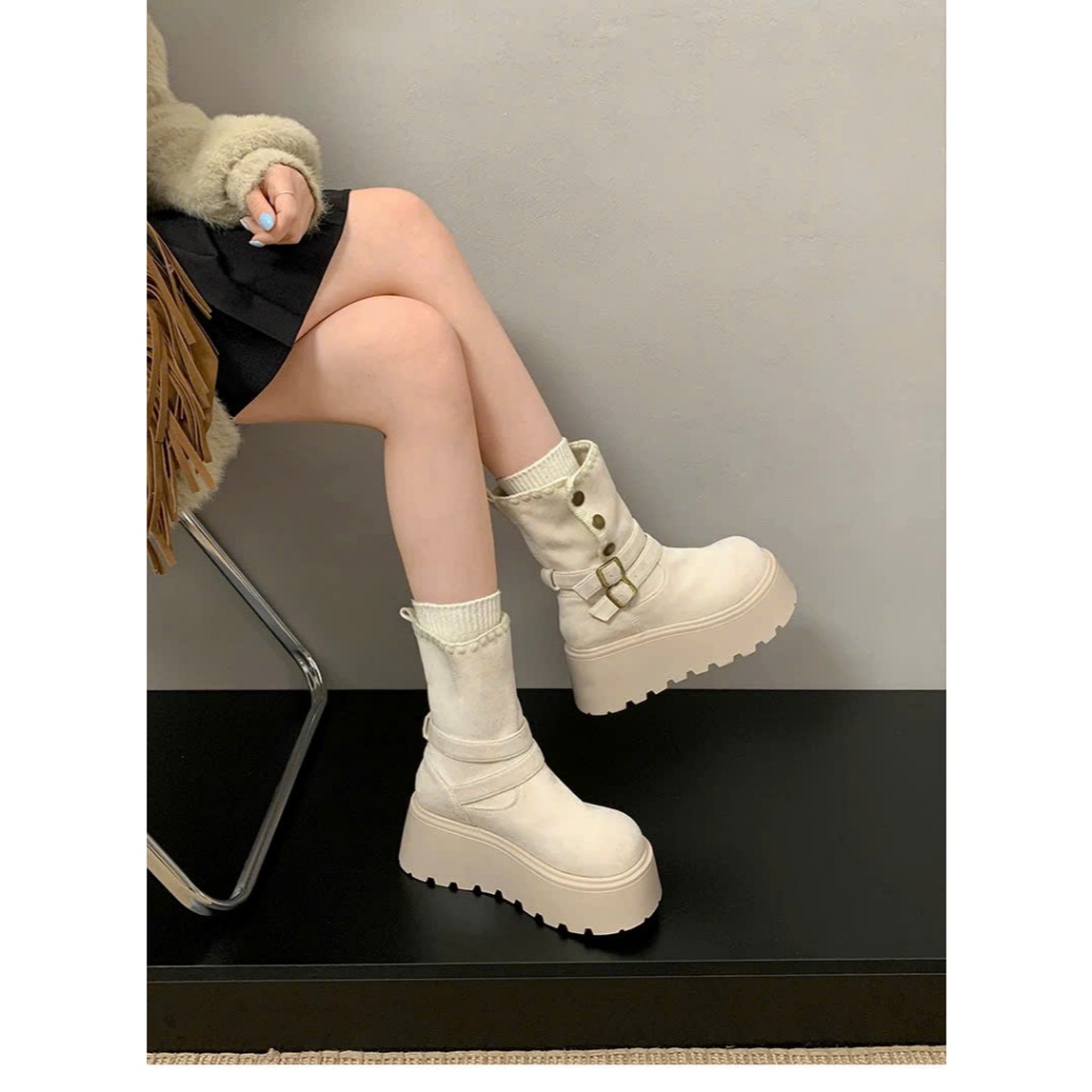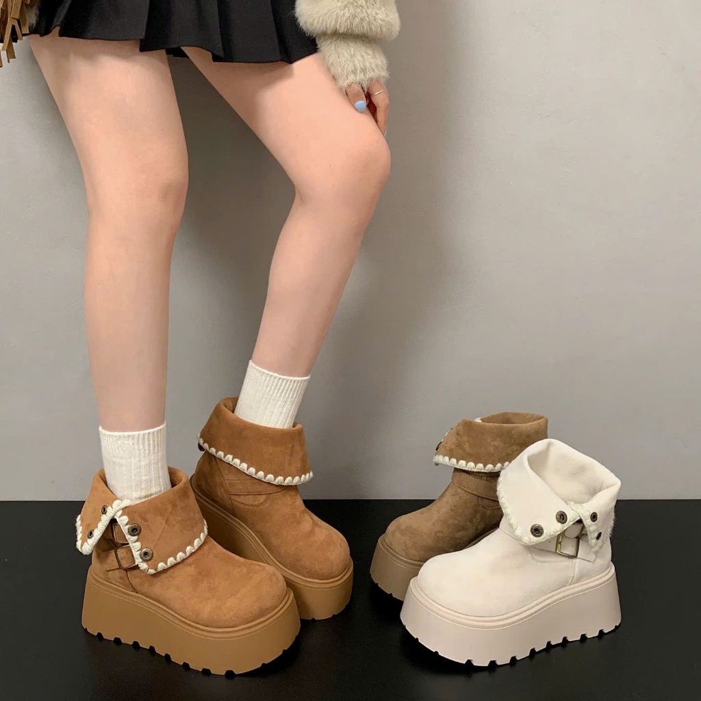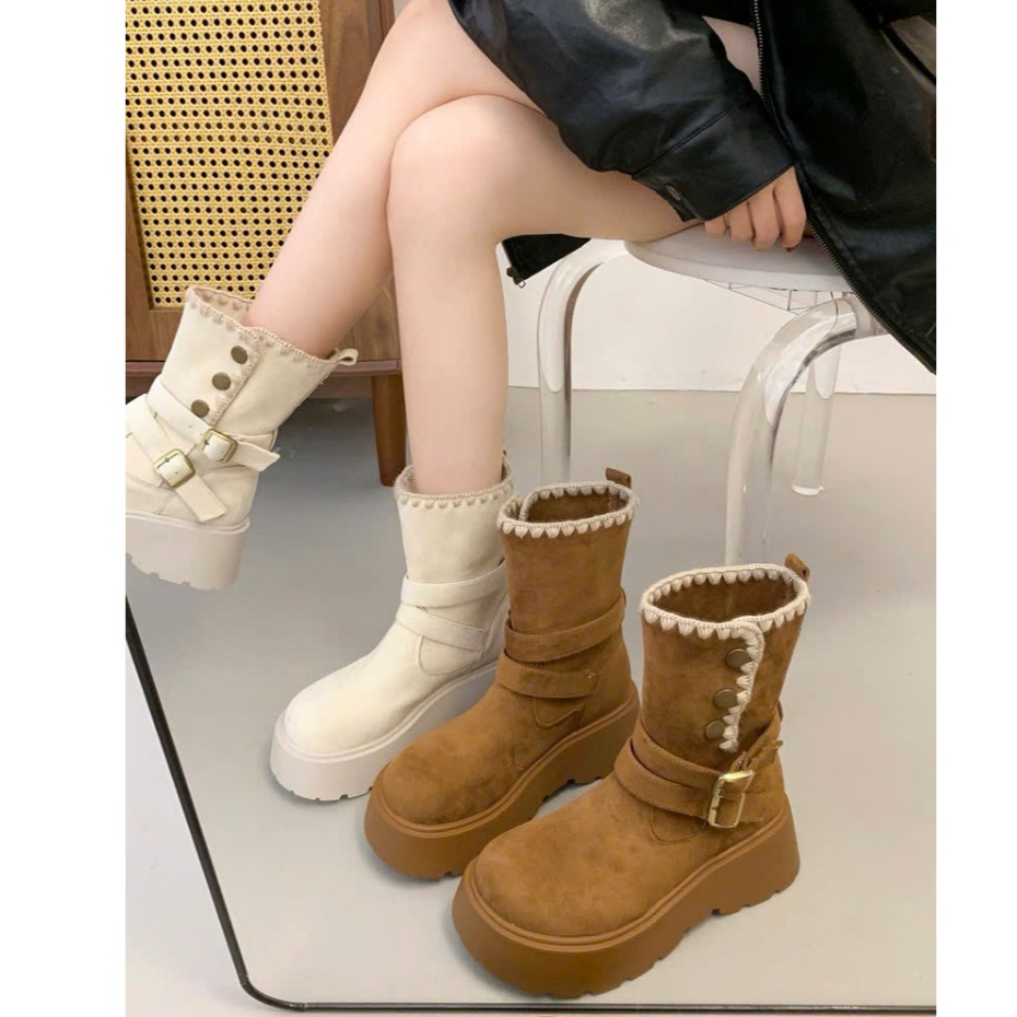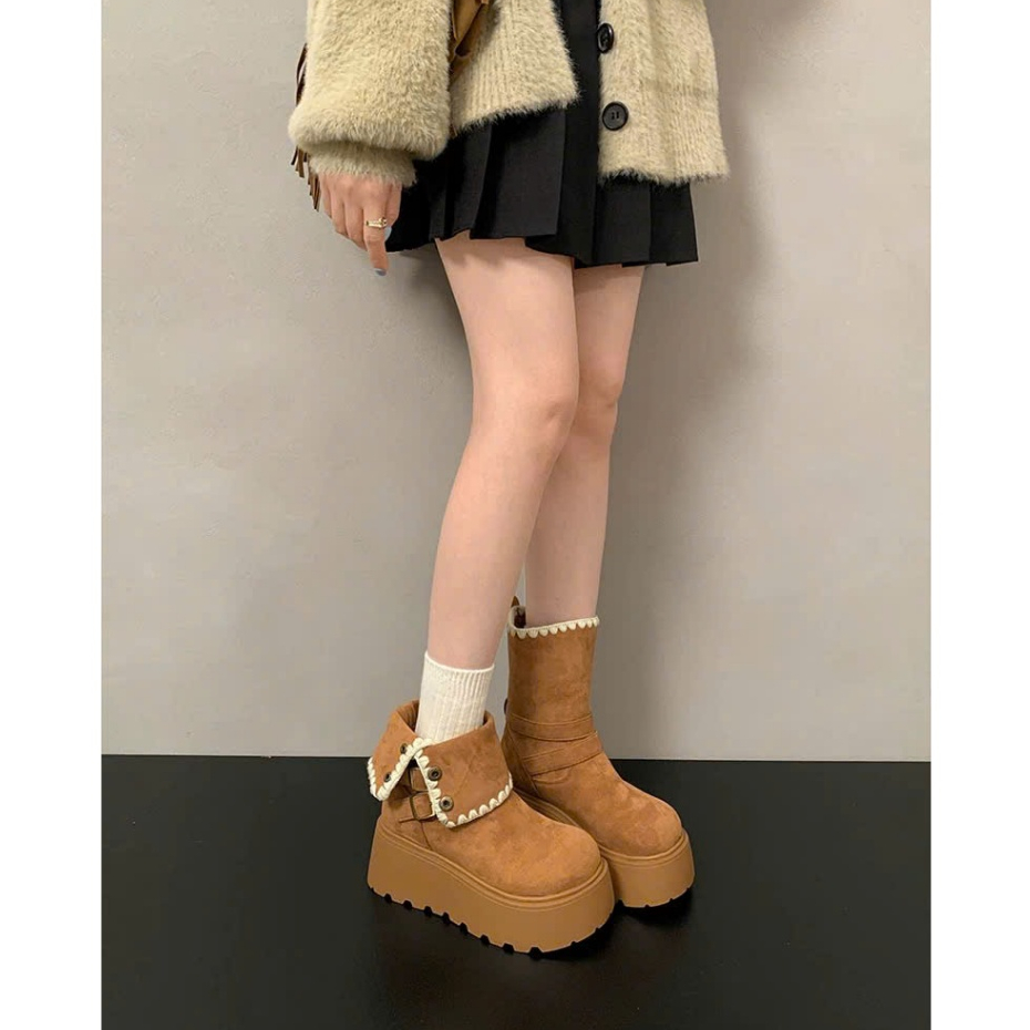 [PHOM TO LÙI 1 SIZE ] Bốt nữ cổ lửng khuy bấm viền thêu FLORA đi được 2 kiểu