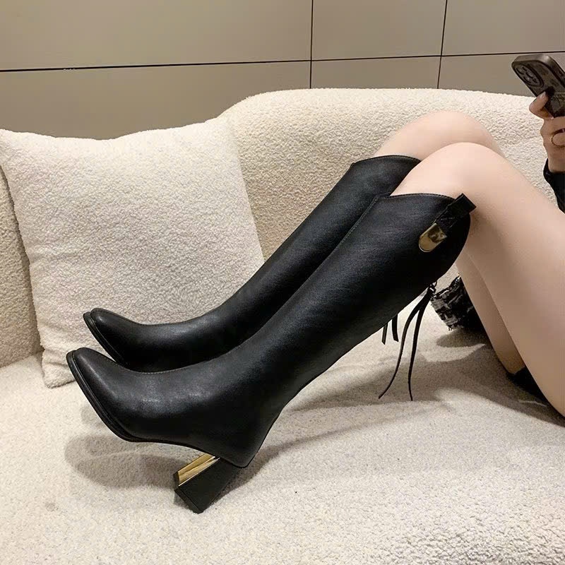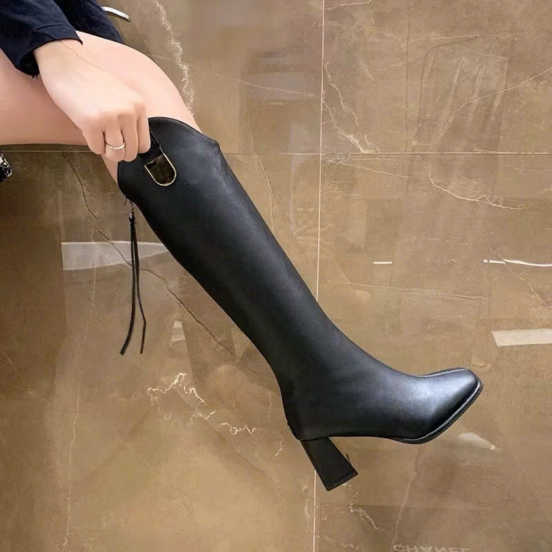 [HÀNG L1-FULLBOX] Bốt Đùi DORA cổ V mũi vuông đế trụ tráng gương có khóa kéo sau hàng QCCC 2026