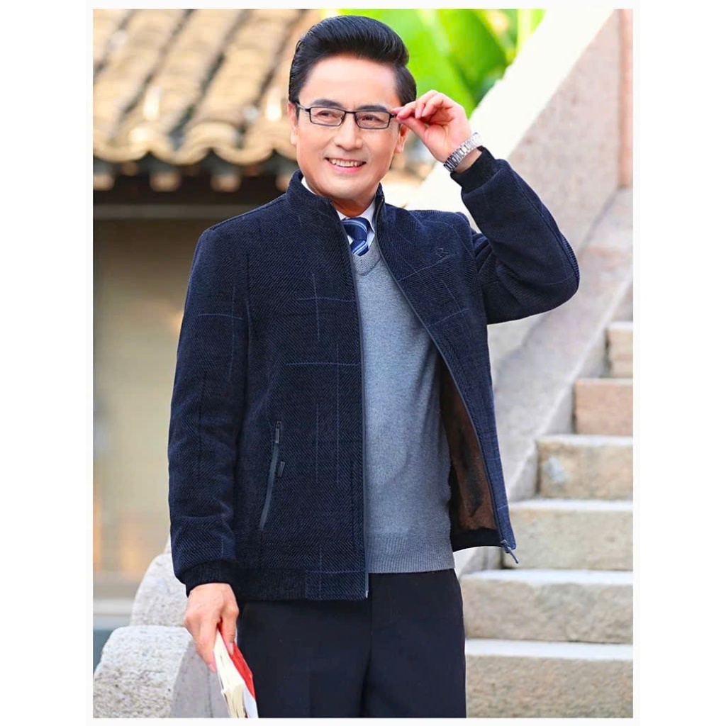 Áo Khoác Dạ Lót Lông Trung Niên Nam, Áo Khoác Lót Lông Cho Ông Cho Bố, Chất Liệu Dạ Lót Lông Cao Cấp, Dày Ấm PL06