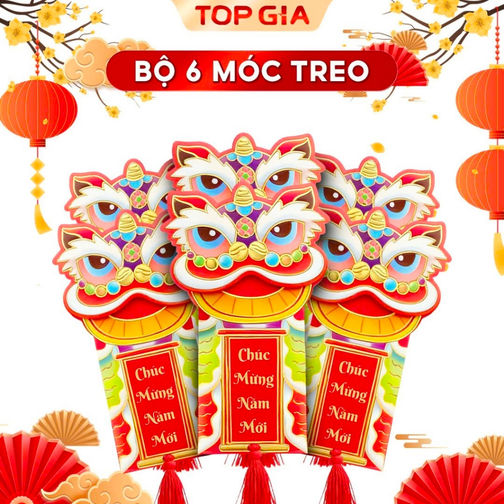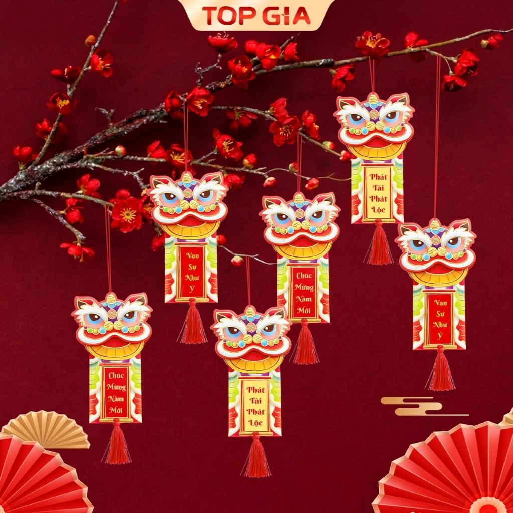 [QUÀ TẶNG KHÔNG BÁN] Bộ 6 móc treo Tết TopGia hình đầu lân ngày Tết chúc mừng năm mới, vạn sự như ý