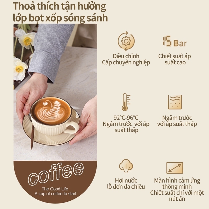(TẶNG CỐI XAY) Máy pha cà phê Espresso CM868 tự động, áp suất 20 bar, Máy pha cafe gia đình công suất lớn
