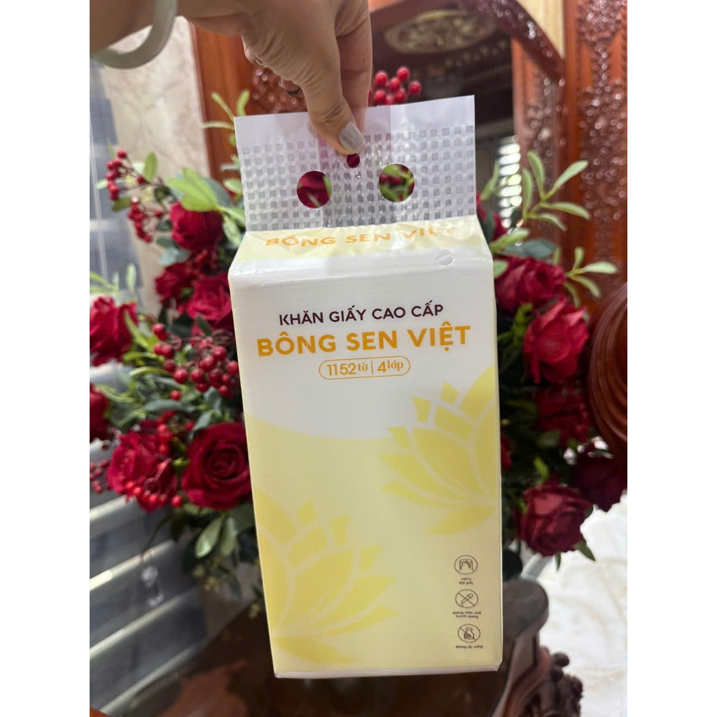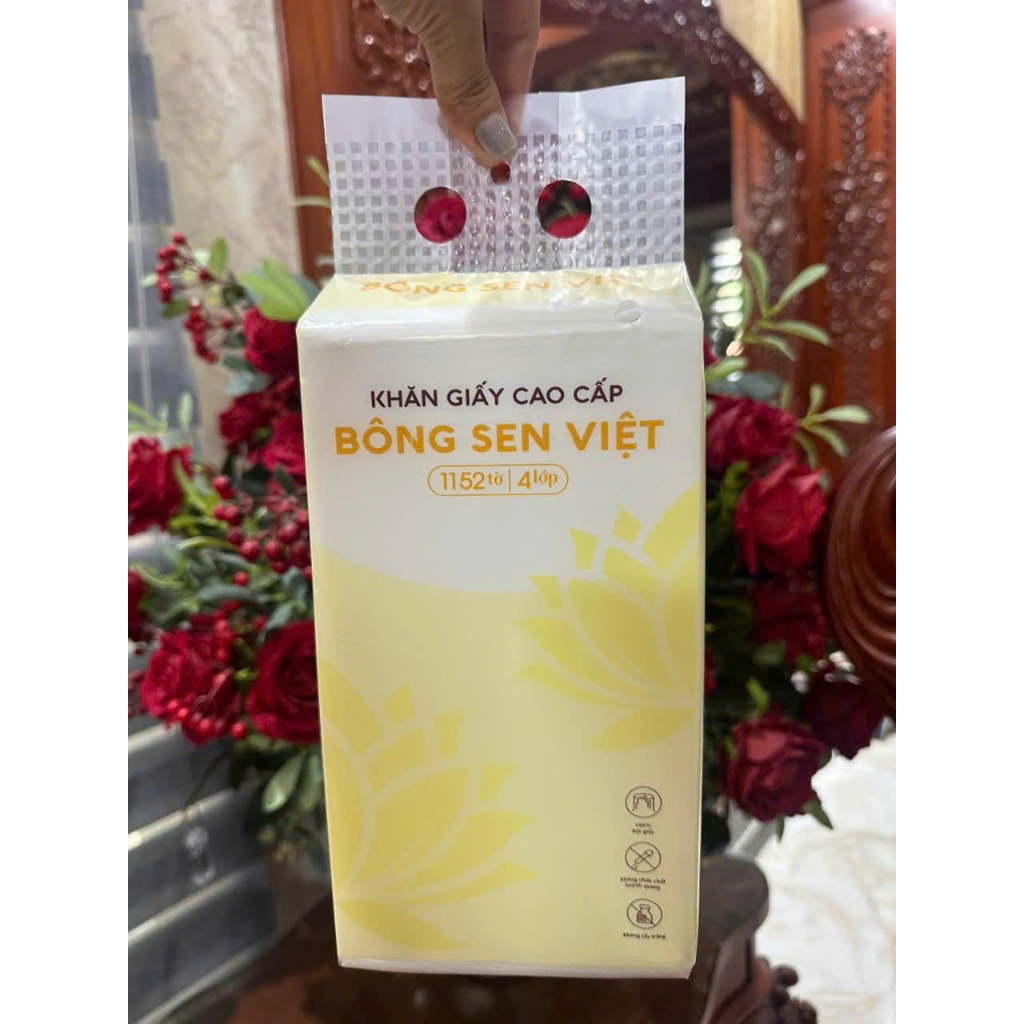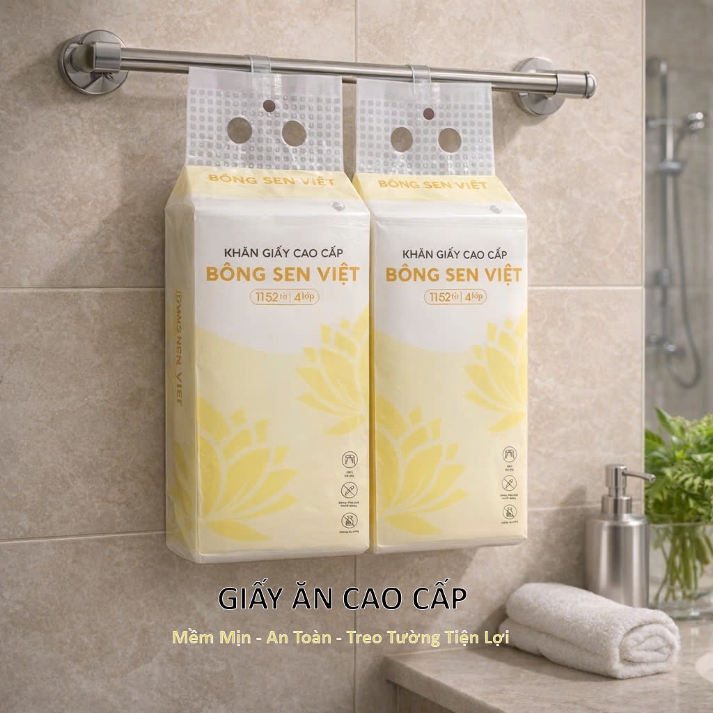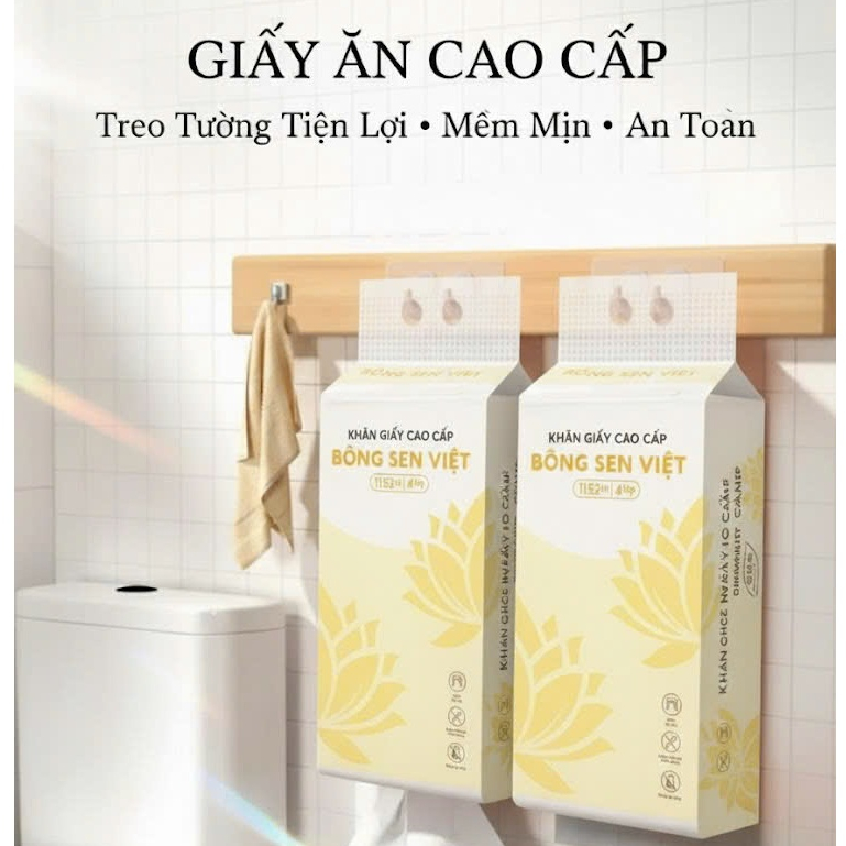 Thùng 10 bịch Khăn Giấy Rút Treo Tường Bông Sen Việt 1200Tờ, Tặng Kèm 4 Móc Treo Tường