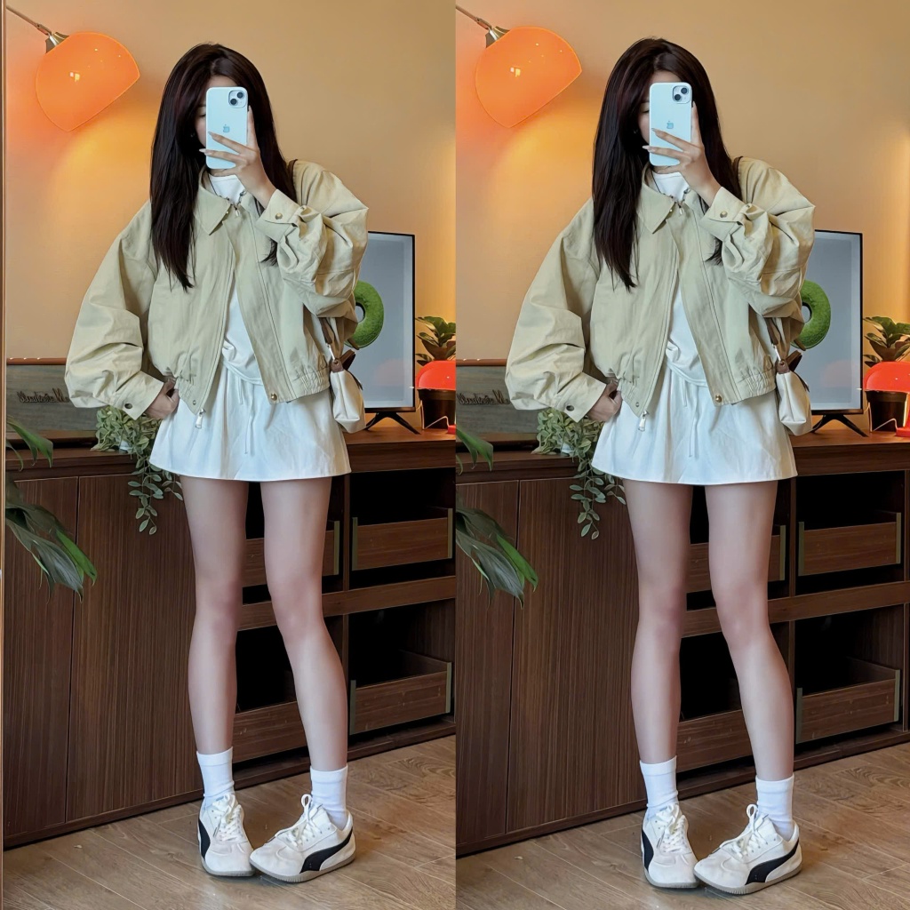 (ẢNH OLDSCHOOL) Áo khoác bomber KAKI MỀM nữ cổ bẻ dáng rộng QC1602
