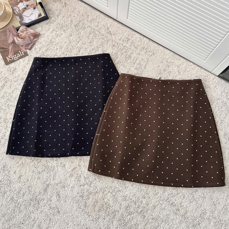 (HÀNG QC-Tag lụa) Chân váy nữ chữ A chất dạ ép chấm bi có lót quần CV5765 HÀNG QC