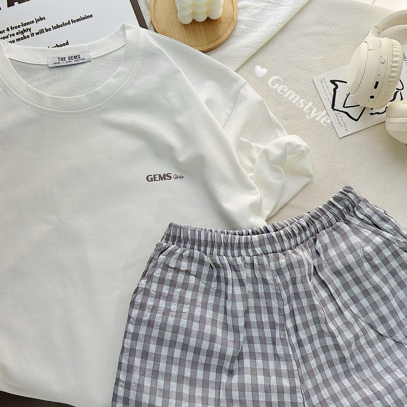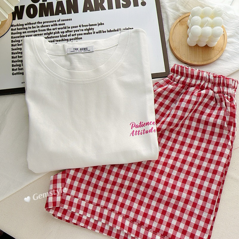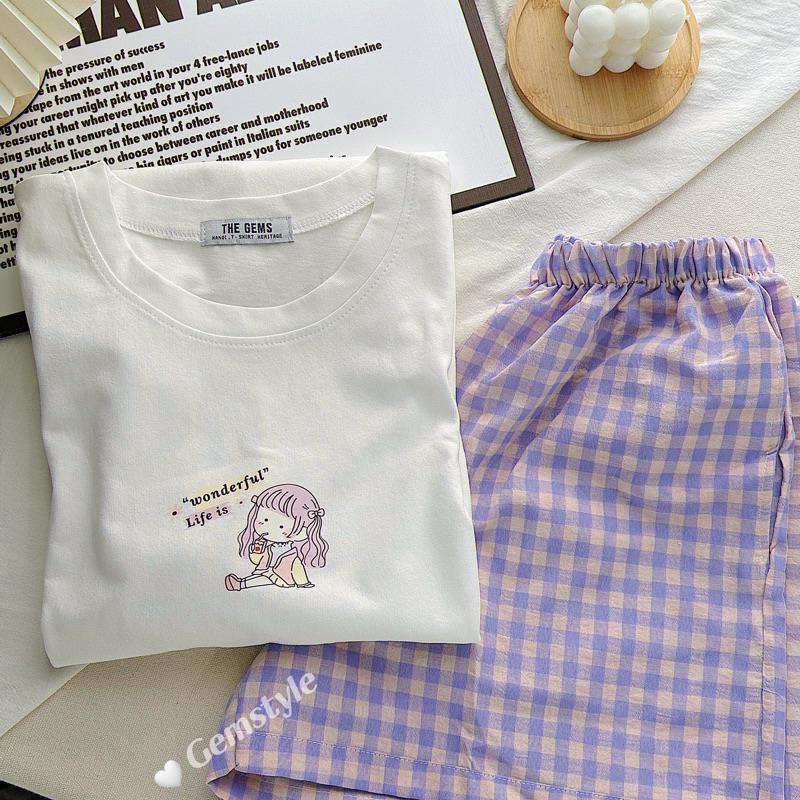 Bộ Đồ Ngủ áo phông KÈM quần caro nhiều màu mặc nhà mùa hè, chất liệu cotton thoáng mát (có size nhỏ)